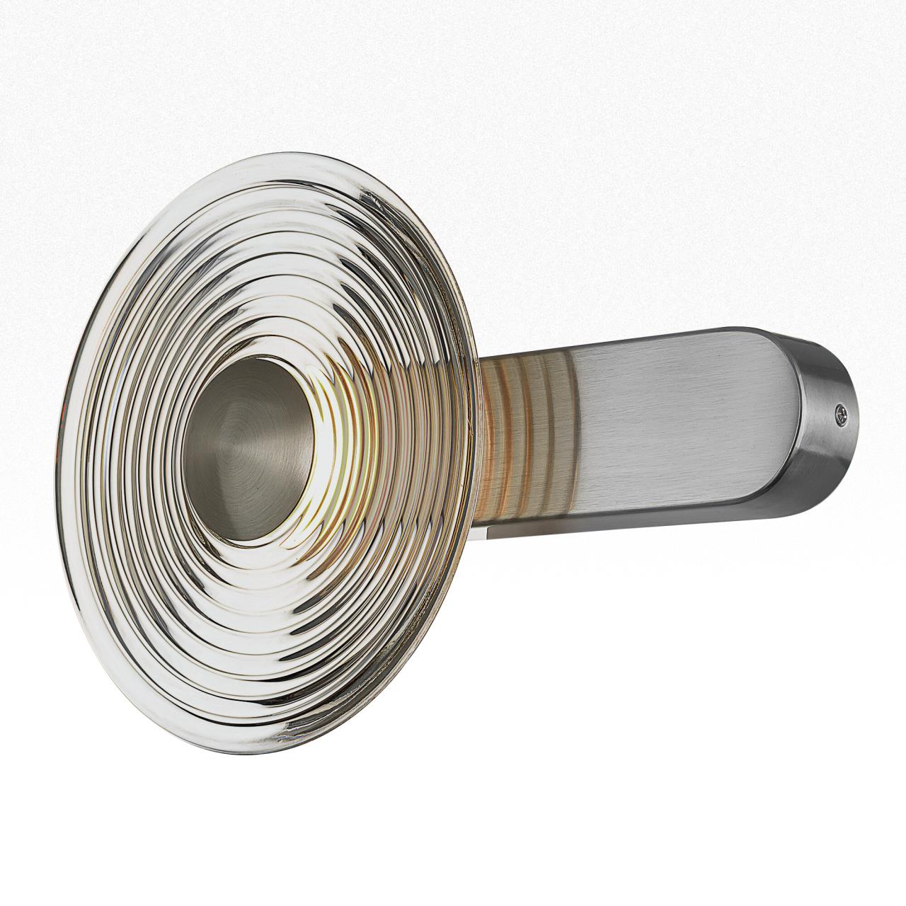 Корпус светильника изготовлен из металлического сплава со стильным хромированным оттенком. Большой круглый плафон — из прозрачного стекла. Благодаря встроенным светодиодам с цветовой температурой 3000К бра светит мягким, равномерным светом без мерцания и пульсаций. Общая мощность светильника — 7Вт.
