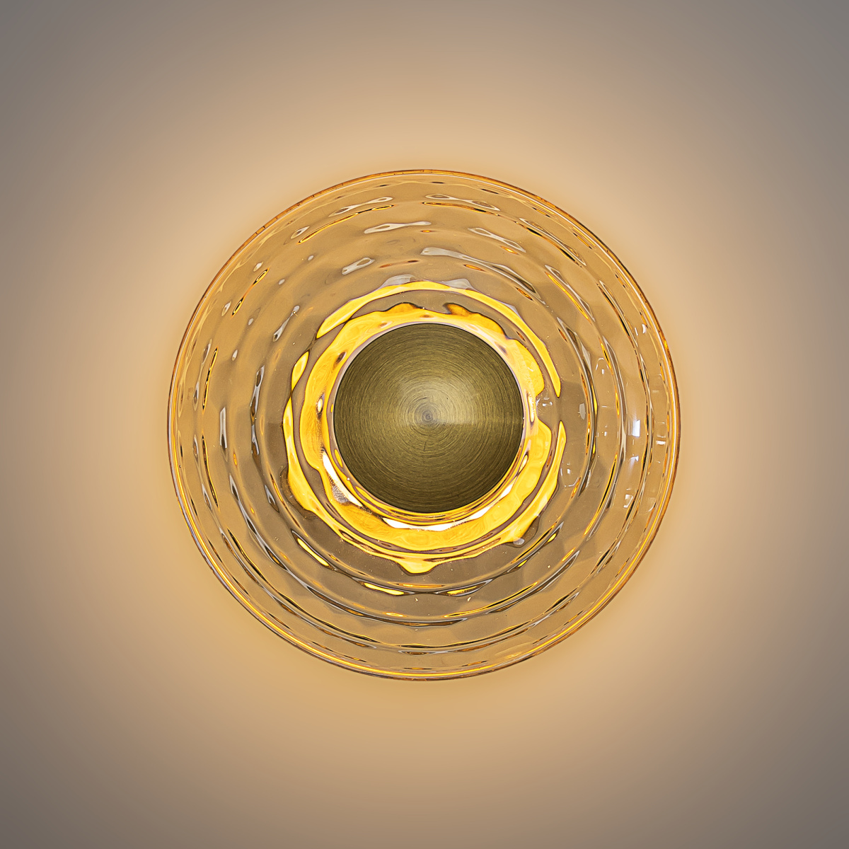 Корпус изготовлен из металла модного оттенка латуни. Круглый плафон диаметром 15см из стекла с насыщенной янтарной тонировкой закреплен на металлическом основании. Мощность изделия составляет 6Вт.