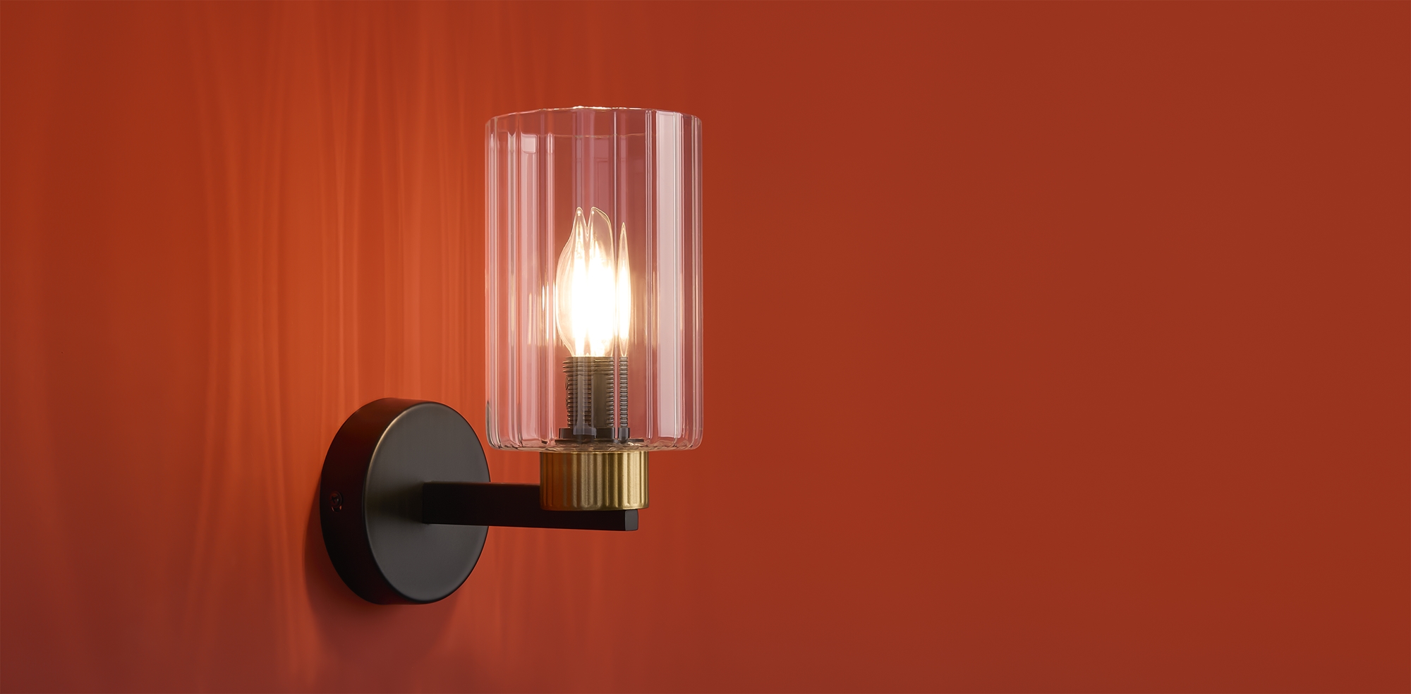 Металлическая арматура чёрного матового цвета с латунными вставками. Прозрачные цилиндрические стеклянные абажуры. Лампы E14 (не включены). Трендовое сочетание для современных интерьеров.