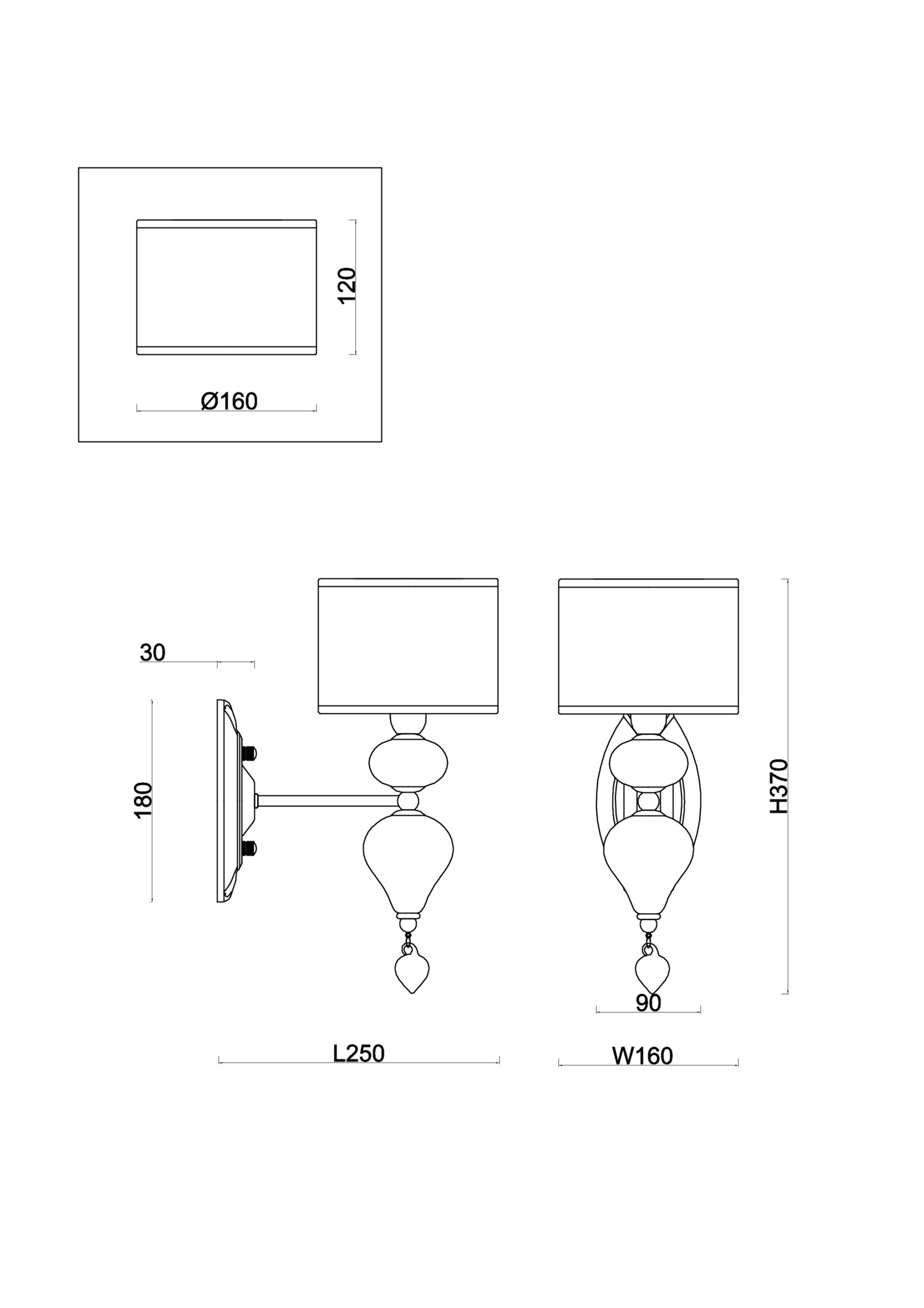 - Высота плафона (абажура): 120