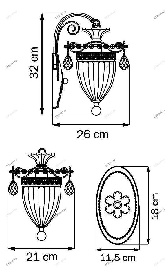 - Материал плафонов: Хрусталь