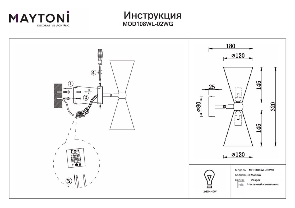 Купить "Бра Maytoni Vesper MOD108WL-02WG"