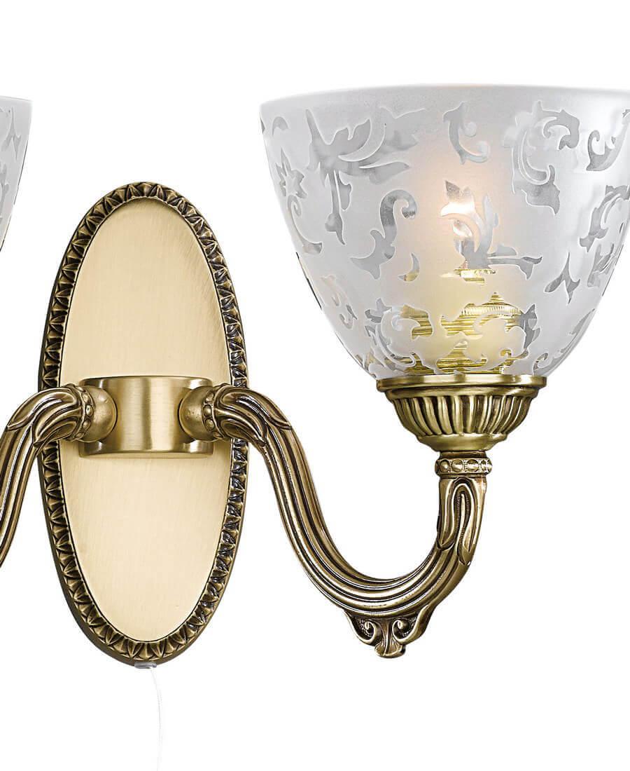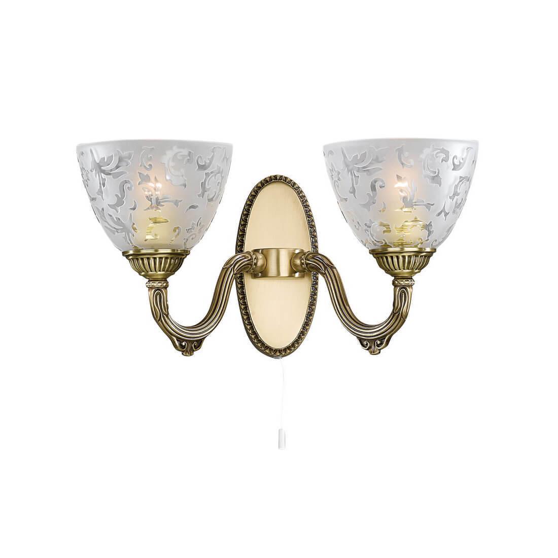 Бра Reccagni Angelo A 6252/2 Итальянского производсва – уникальное сочетание высокого качества и удивительных фактур. Этот светильник Классического стиля хорошо подойдет Для гостиной и придаст помещению мягкий и приятный свет. Плафоны белые из стекла. Арматура бронза из металла. Кол-во ламп - 2шт. Общая мощность 120W