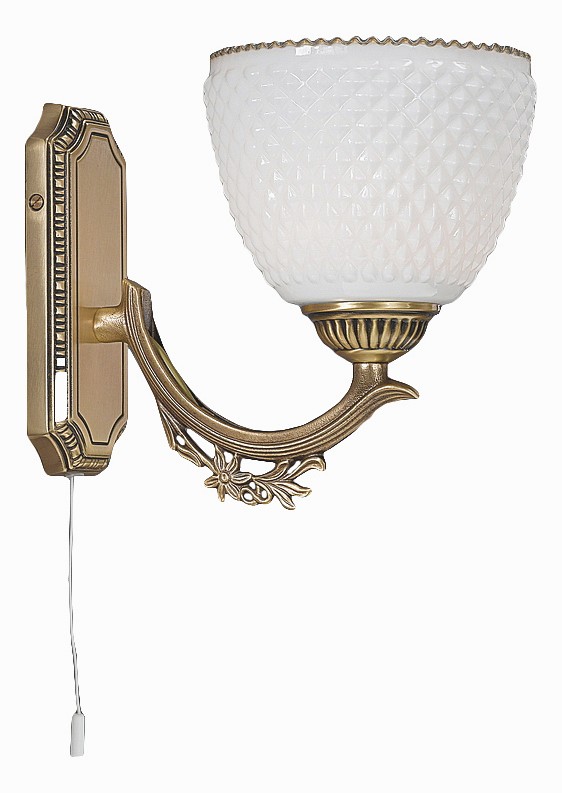 Бра Reccagni Angelo A 8651/1 Итальянского производсва – уникальное сочетание высокого качества и удивительных фактур. Этот светильник Классического стиля хорошо подойдет Для гостиной и придаст помещению мягкий и приятный свет. Плафоны белые из стекла. Арматура бронза из металла. Кол-во ламп - 1шт. Общая мощность 60W
