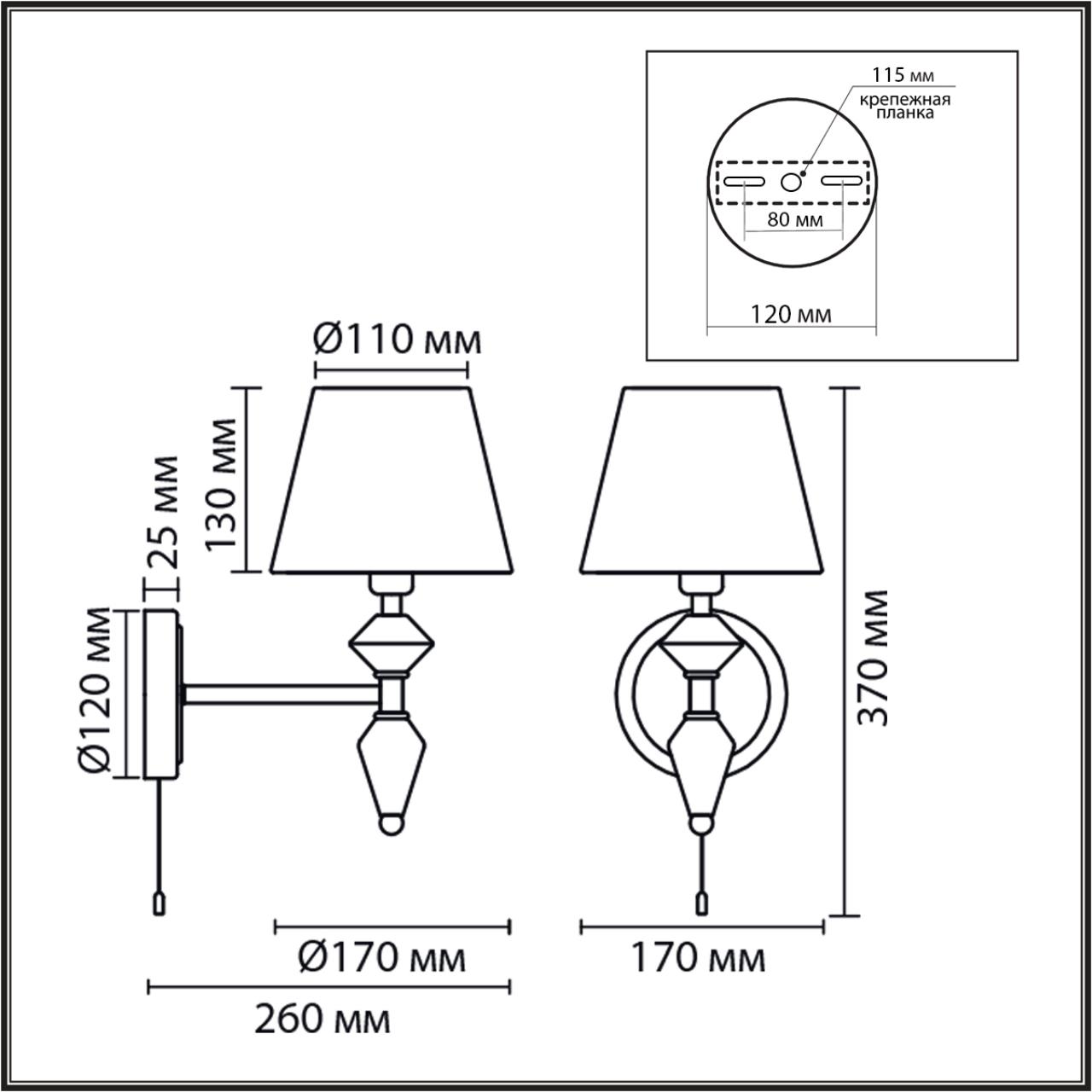 - Направление плафонов: Плафон вверх