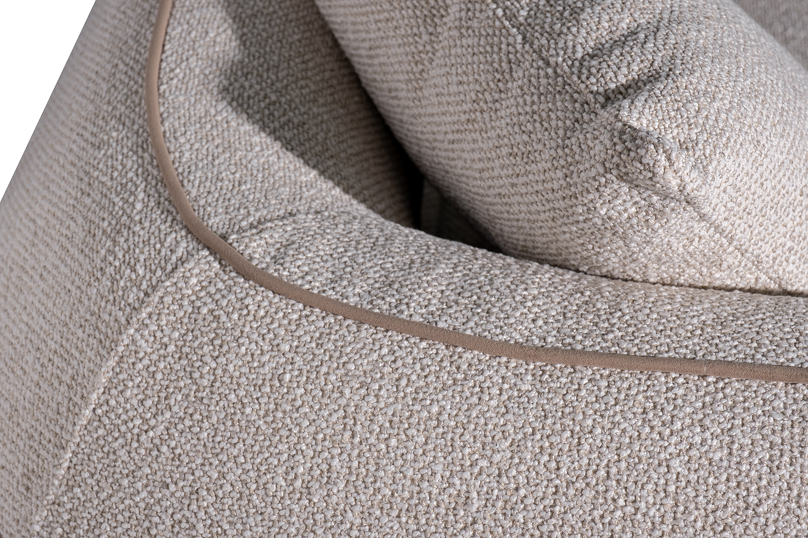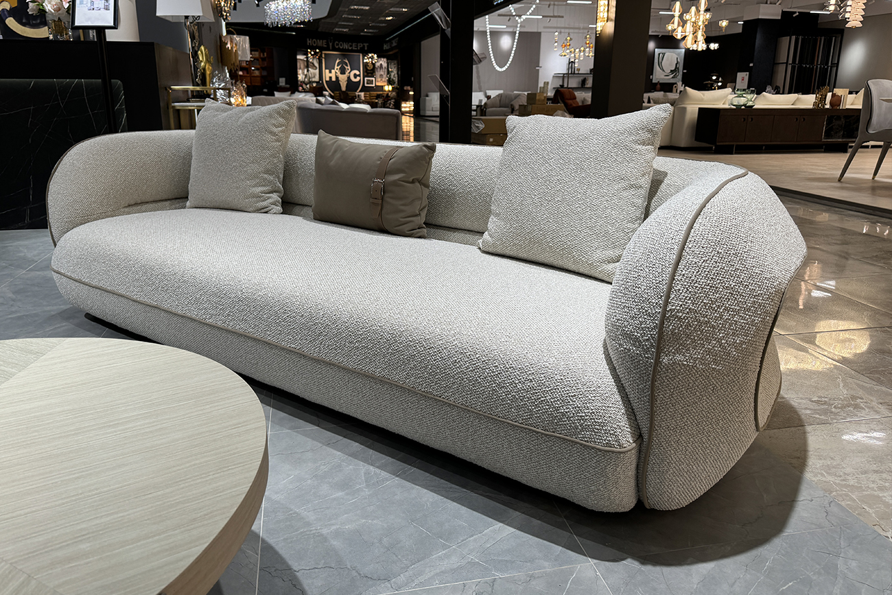 Диван Amelia трёхместный — воплощение уюта и современной элегантности в светлом исполнении. Этот светлый диван букле привлекает мягкой фактурой обивки и округлыми, плавными формами, которые создают ощущение комфорта и визуального спокойствия. Бежевый кант деликатно подчёркивает силуэт модели, добавляя образу графичности и аккуратного акцента. Дизайнерский диван Amelia гармонично вписывается в интерьеры в стиле modern luxury, современная классика и soft minimalism, становясь центральным элементом гостиной и пространством для отдыха каждый день. В комплект входят две подушки 55*55см в ткани обивки и одна велюровая подушка 40*60см с декоративным ремнем. Габариты сиденья: ширина – 197см, глубина – 72см, высота от пола – 43см.