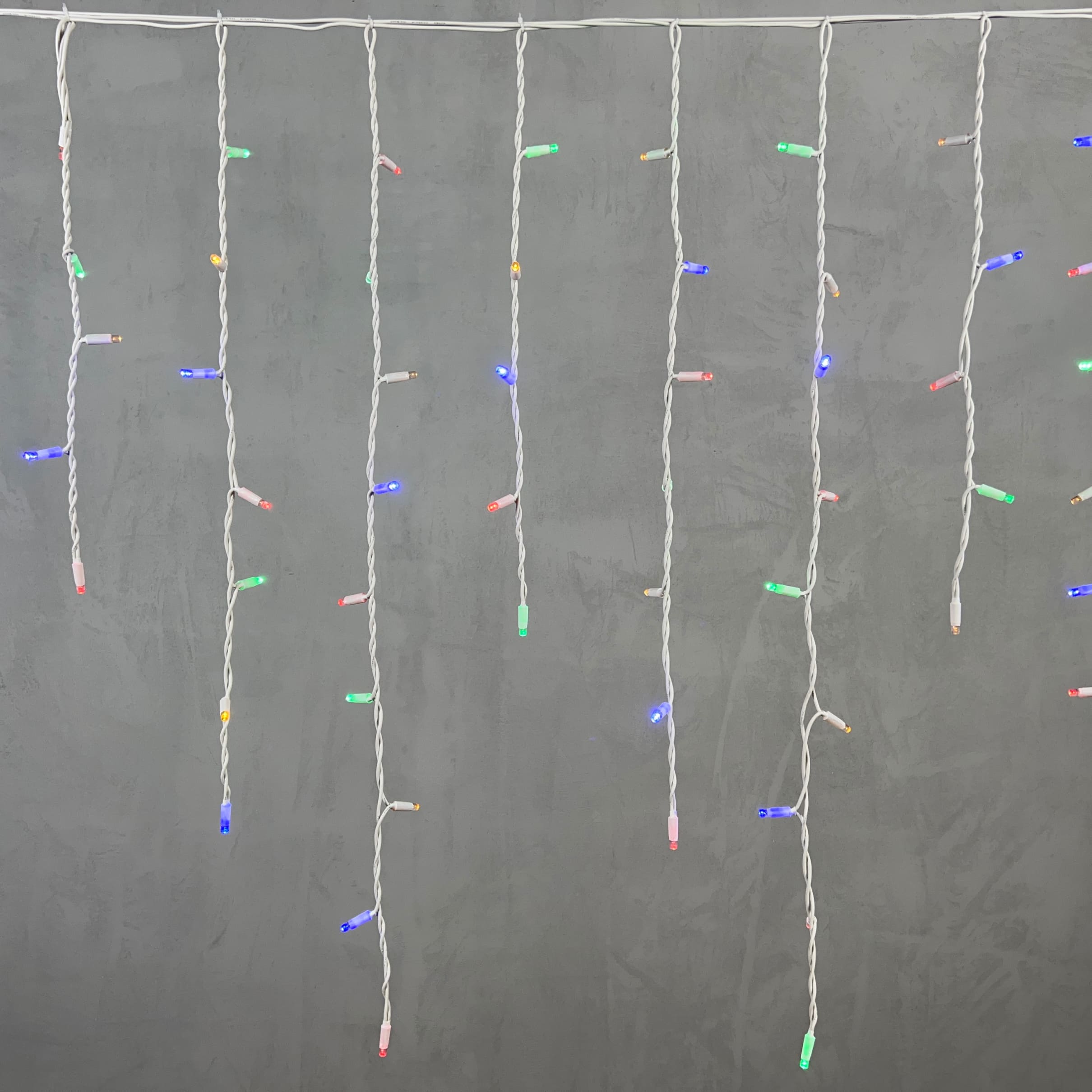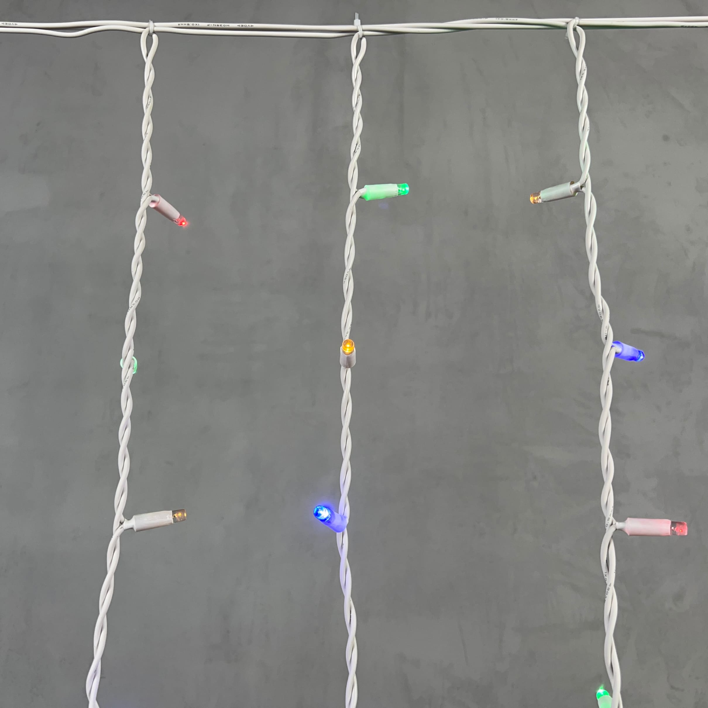 Гирлянда Бахрома 3, 2 x 0, 9 м Разноцветная 220В, 168 LED, Провод Белый Каучук, IP65 LTC LL168-8-2M в новосибирске