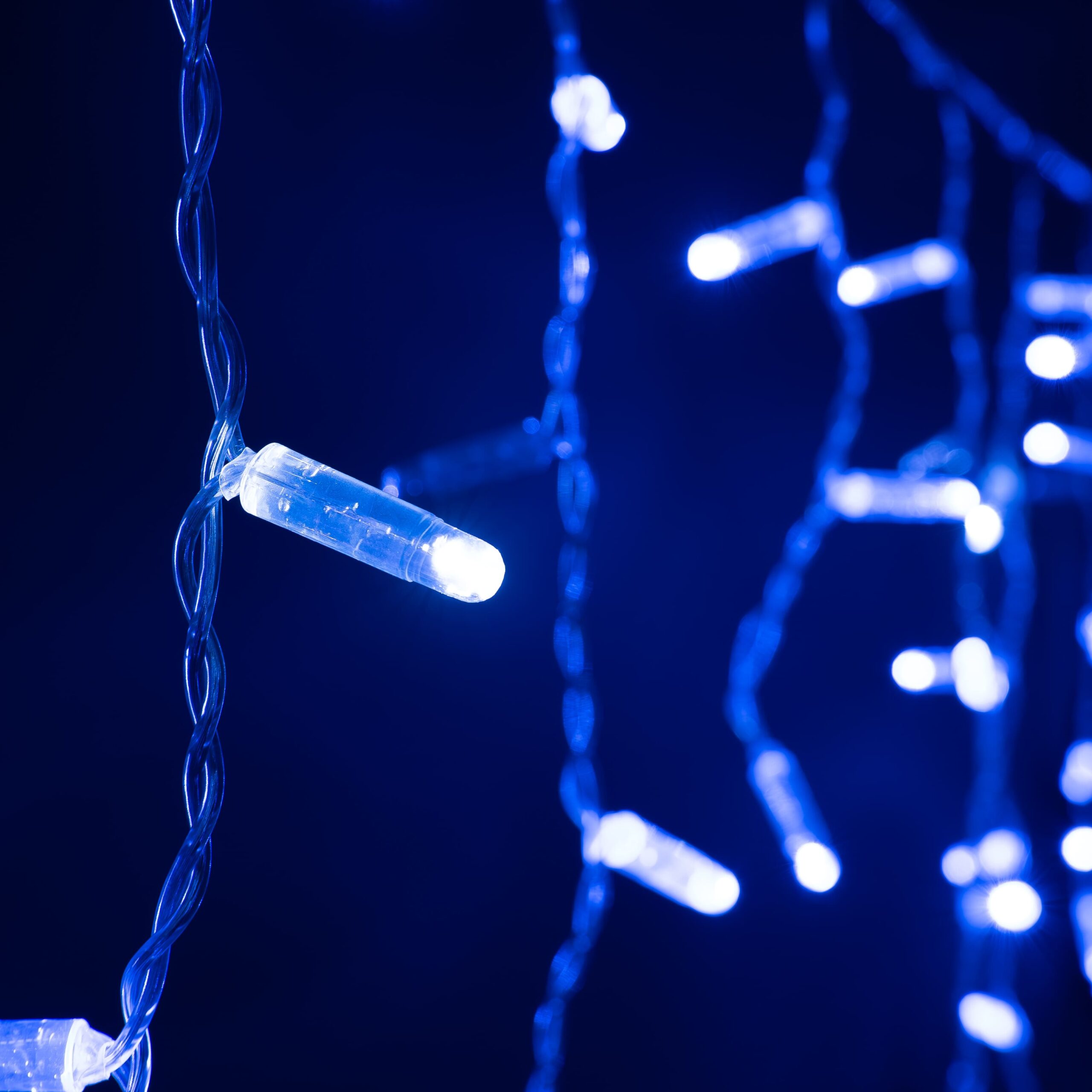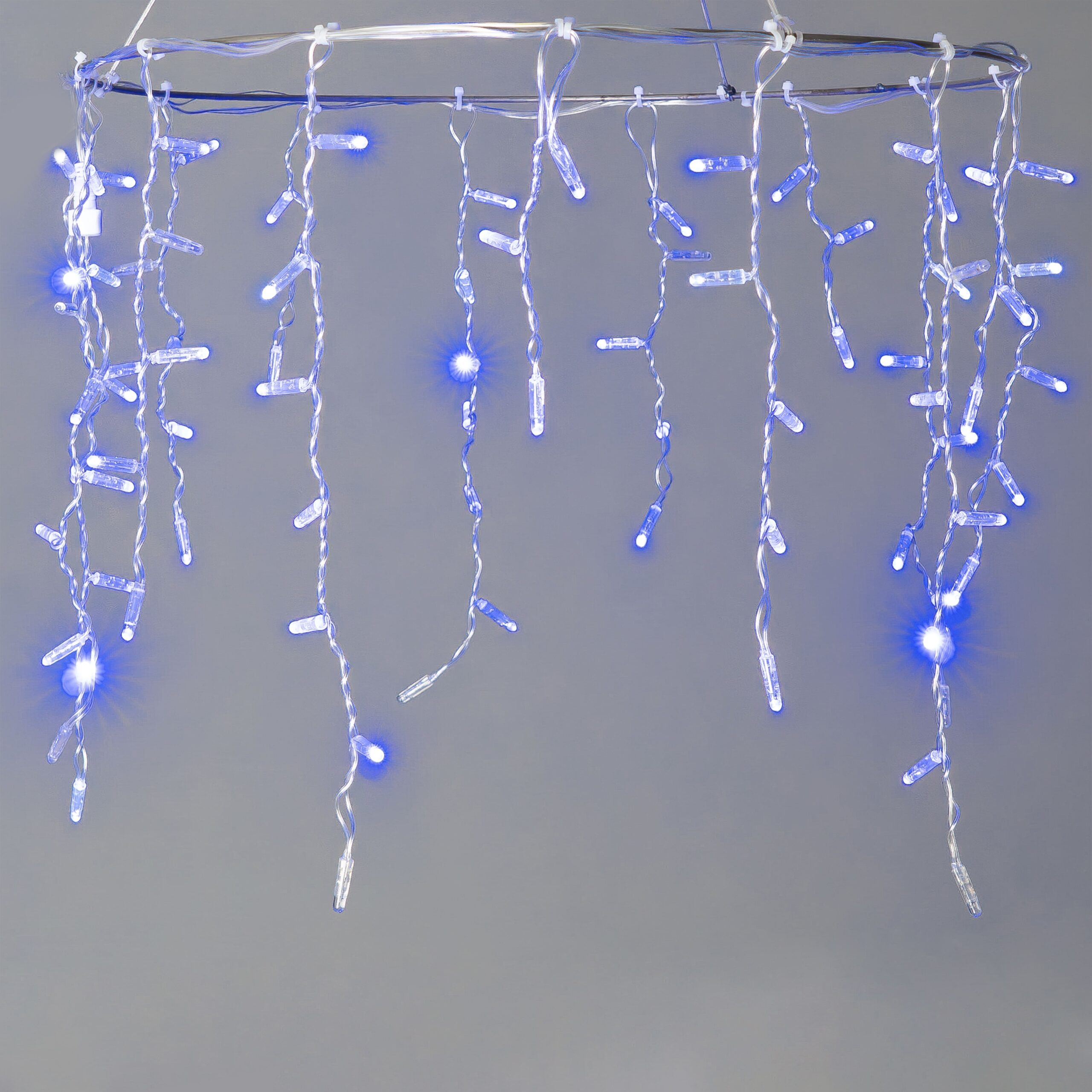 Купить "Гирлянда Бахрома с Колпачком 3,1 x 0,5 м Синяя с Мерцанием Белого Диода 200В, 120 LED, Провод Прозрачный ПВХ, IP65 LTC PIL120BLWCAP-10-2B"