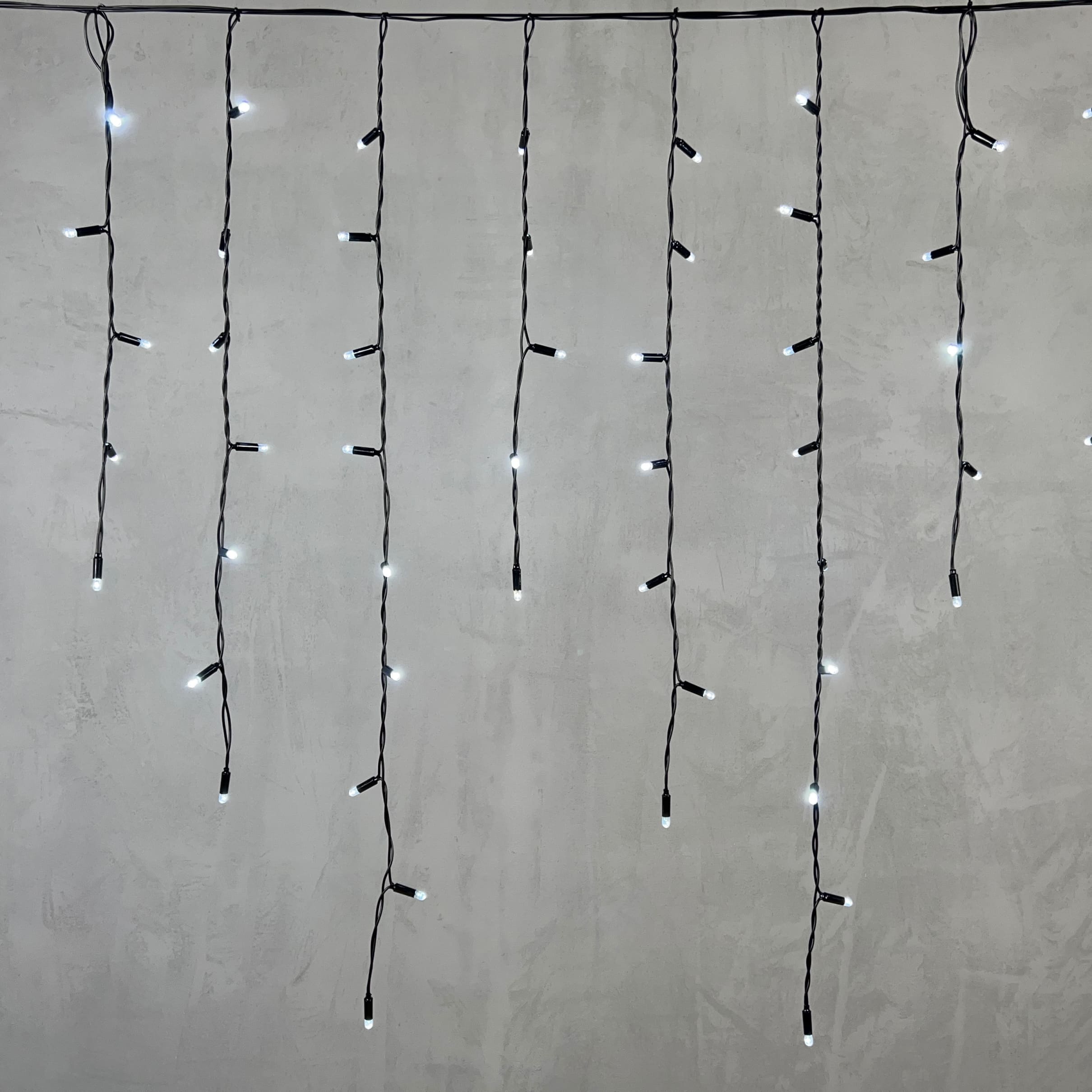 Купить "Гирлянда Бахрома с Колпачком 3,2 x 0,9 м Белая 220В, 168 LED, Провод Черный ПВХ, IP65 LTC PIL180CAP-11-2W"