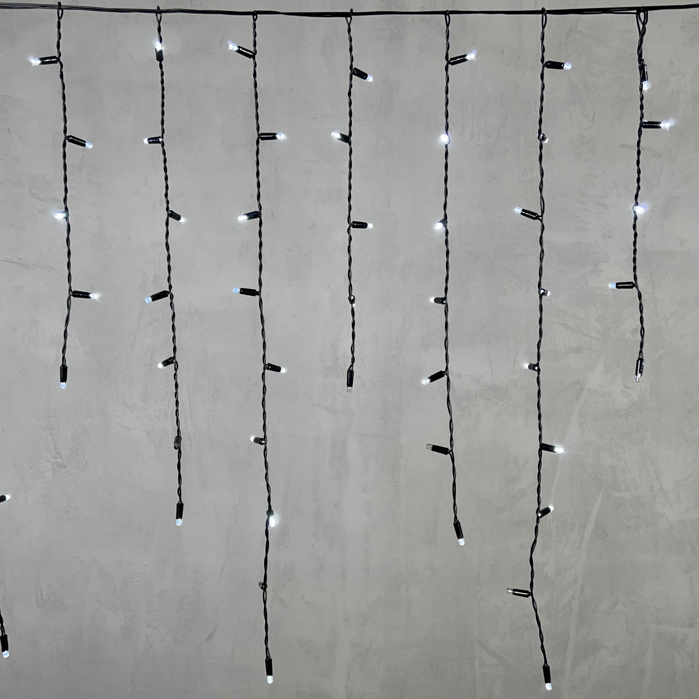 Гирлянда Бахрома с Колпачком 3, 2 x 0, 9 м Белая с Мерцанием Белого Диода 220В, 168 LED, Провод Черный ПВХ, IP65 LTC PIL180BLWCAP-11-2W в новосибирске