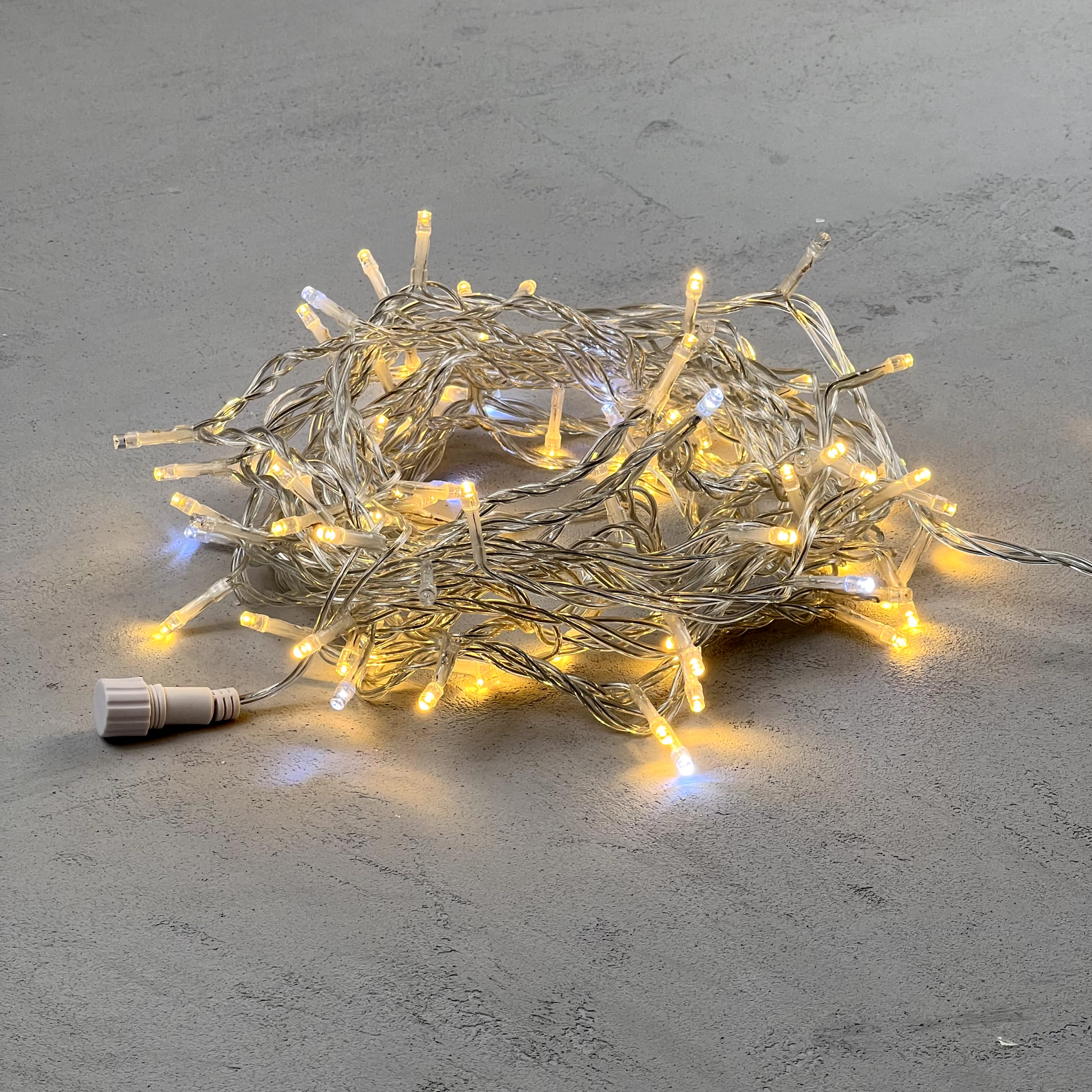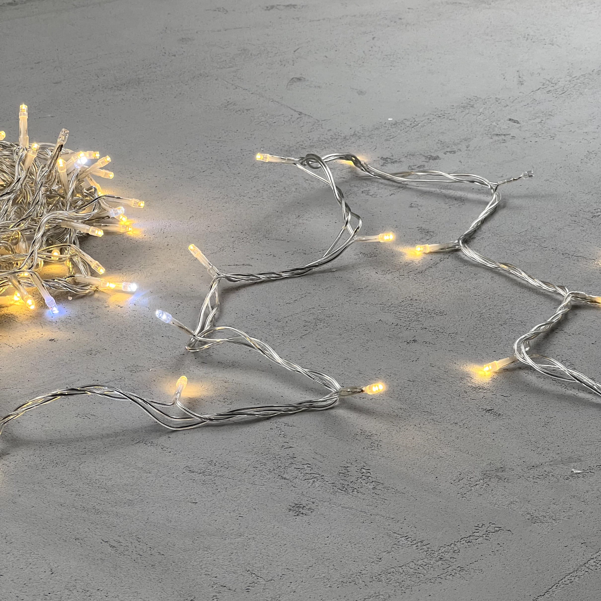 Гирлянда Нить 10м Тепло-Белая с Мерцанием Белого Диода 24В, 100 LED, Провод Прозрачный ПВХ, IP54 LTC PST100BLW-10-1WW в новосибирске