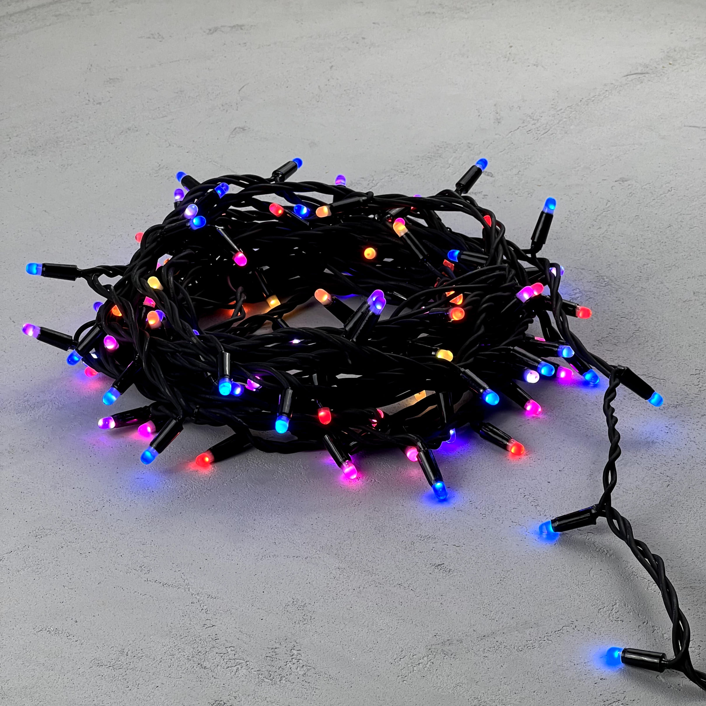 Купить "Гирлянда Нить с Колпачком 15м Разноцветная 220В, 100 LED, Провод Черный Каучук, IP65 LTC AUG100CAP-21-1EPRGB"