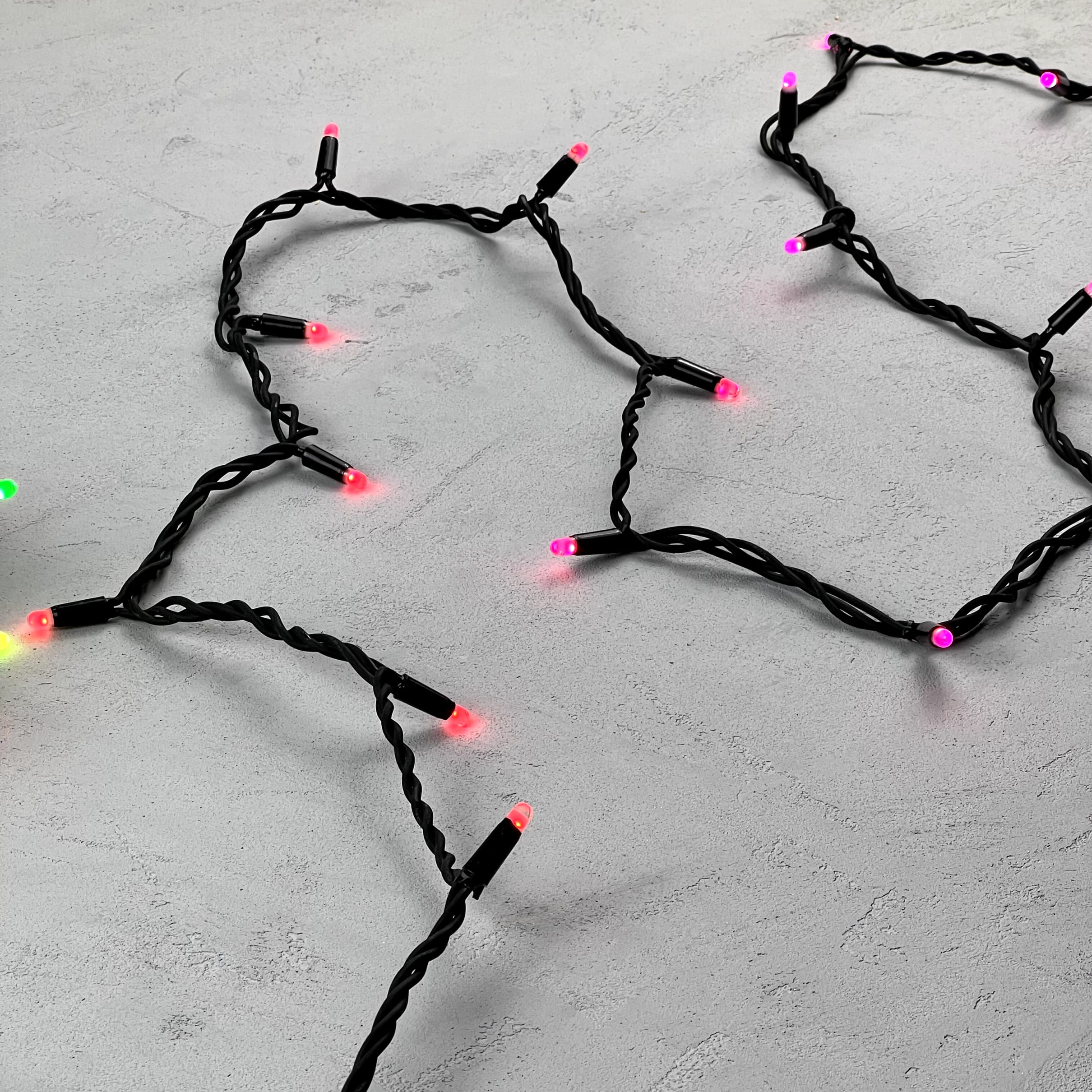 Гирлянда Нить с Колпачком 15м Разноцветная 220В, 100 LED, Провод Черный Каучук, IP65 LTC AUG100CAP-21-1EPRGB в новосибирске