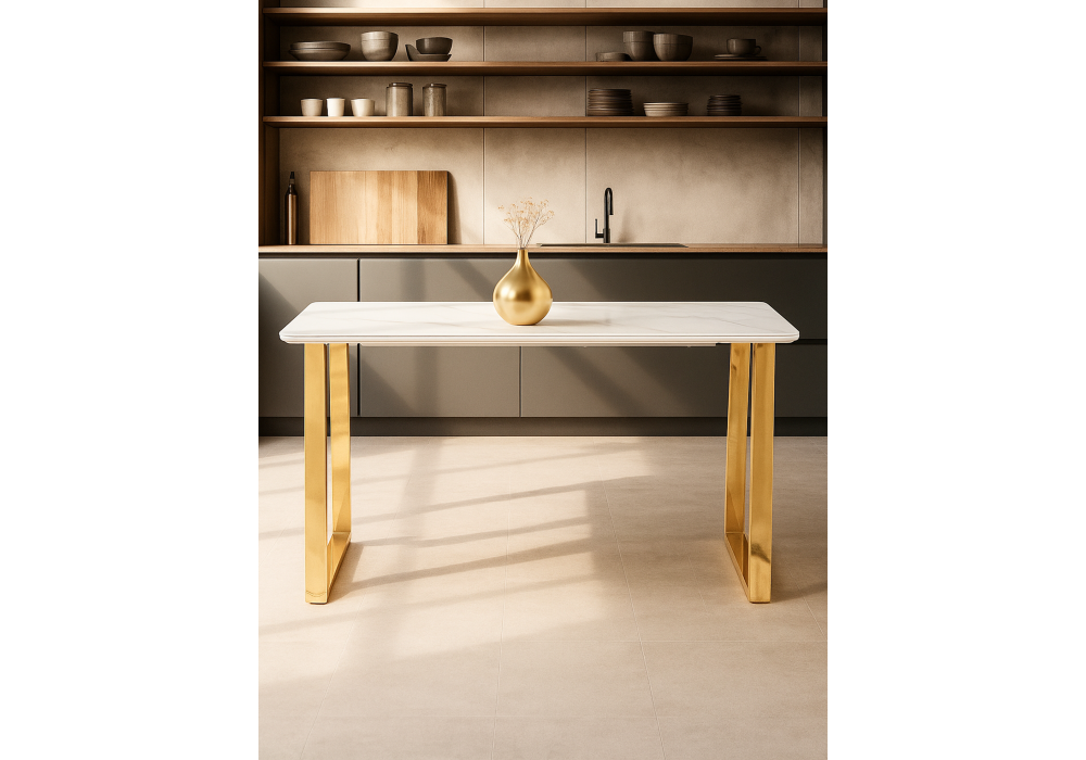 Керамический стол Woodville Селена 2 140х80х77 белый мрамор / золото 571412 в новосибирске