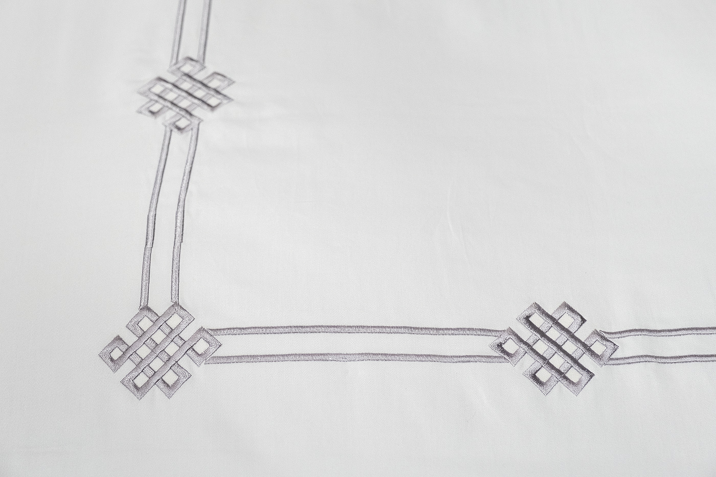 Классический комплект «Арктик» изготовлен из 100% хлопка-сатина высокой плотности 400ТС. Белое белье украшает изящная серая вышивка, которая обрамляет пододеяльник и наволочки по периметру. Этот сложный узор – переплетённые линии с элементами Арт-деко. Модель привлекает внимание красивым контрастом между белой тканью и орнаментом оттенка старинного серебра. Вышивка на постельном белье - дорогой элемент, который придает белью более выраженный вид, создавая объем и, подчеркивая, ценность постельного белья. Оригинальная геометрия орнамента подойдет и для современного интерьера, и для эффектного стиля ар-деко, и для классического дизайна.В данный комплект входят: Пододеяльник 220*240, наволочка 50*70-2 шт и простыня 270*280. Уход: Машинная стирка при максимальной температуре 40С, мягкий режим. Стирать моющими средствами для цветных тканей. Не отбеливать. Барабанная сушка возможна, обычная температура. Гладить с изнаночной стороны при максимальной температуре утюга. Сухая химчистка запрещена.