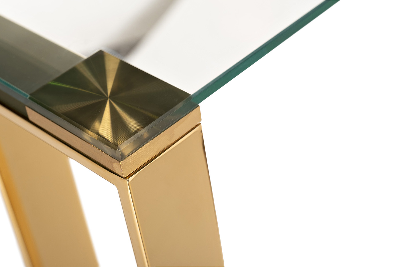 Металлическая консоль со стеклом обладает особенным шармом – она изящная, визуально легкая, элегантная в своей простоте. Изюминка модели – основание необычной формы из позолоченного металла. За счет такой конструкции консоль в гостиной будет смотреться оригинально и добавит пространству шика. Стеклянная столешница станет отличным местом для размещения ваз, статуэток, фоторамок, шкатулок и прочего декора. Благодаря компактным размерам консоль подойдет для размещения в прихожей, спальне, гостиной. Она будет превосходно смотреться в стилистике ар-деко, неоклассика, авангард, фьюжн. Garda Decor предлагает купить консоль, а также любую другую мебель и элементы декора в стилистике современного ар-деко.