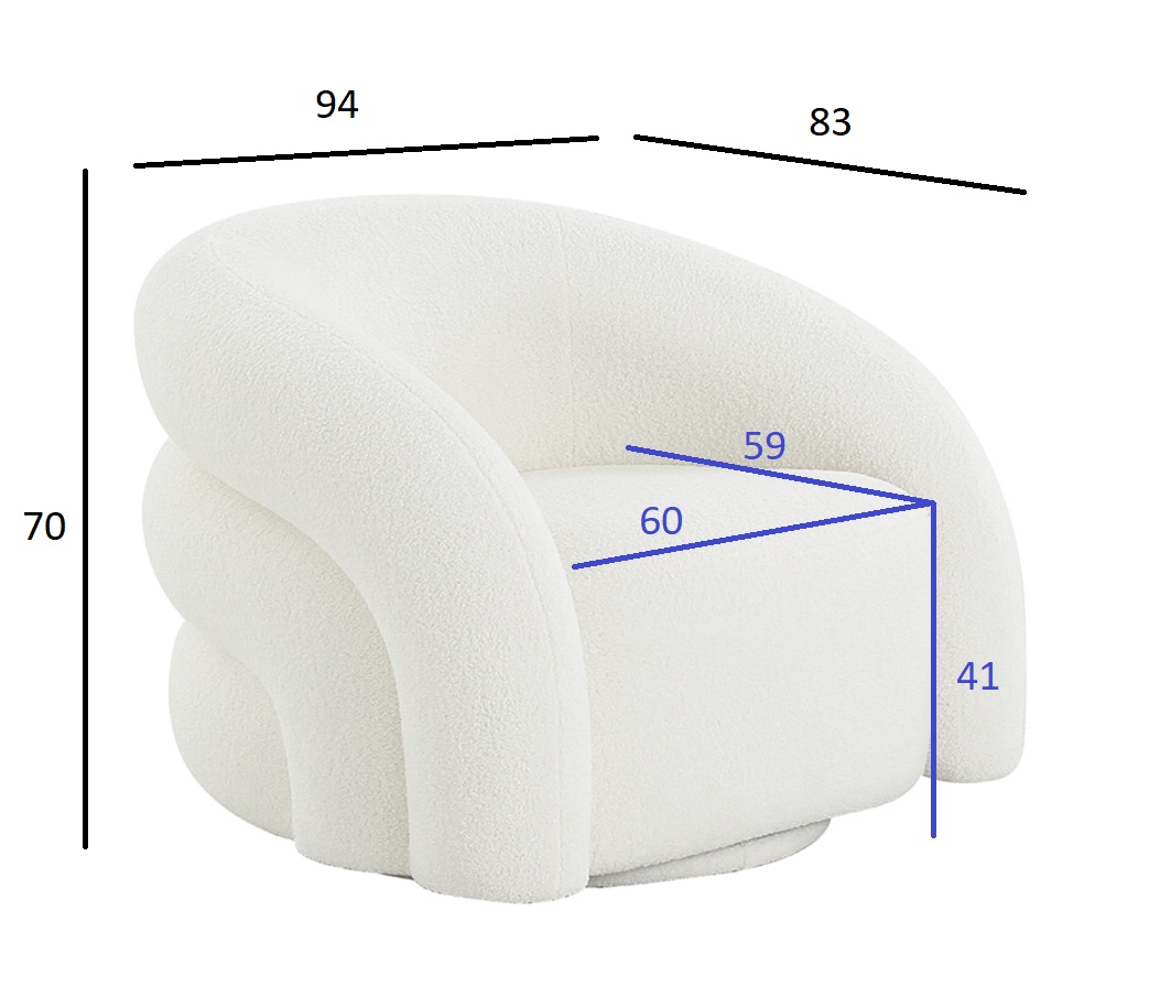 Удобное белое кресло футуристической формы выполнено из мягкой обивки, по фактуре напоминающей овечью шкуру. Оригинальные мягкие выпуклые объемы внешней части несомненно будут притягивать взор и позволят в полной мере воспользоваться преимуществами этого кресла как дизайнерского объекта, декоративного на все 360 градусов.