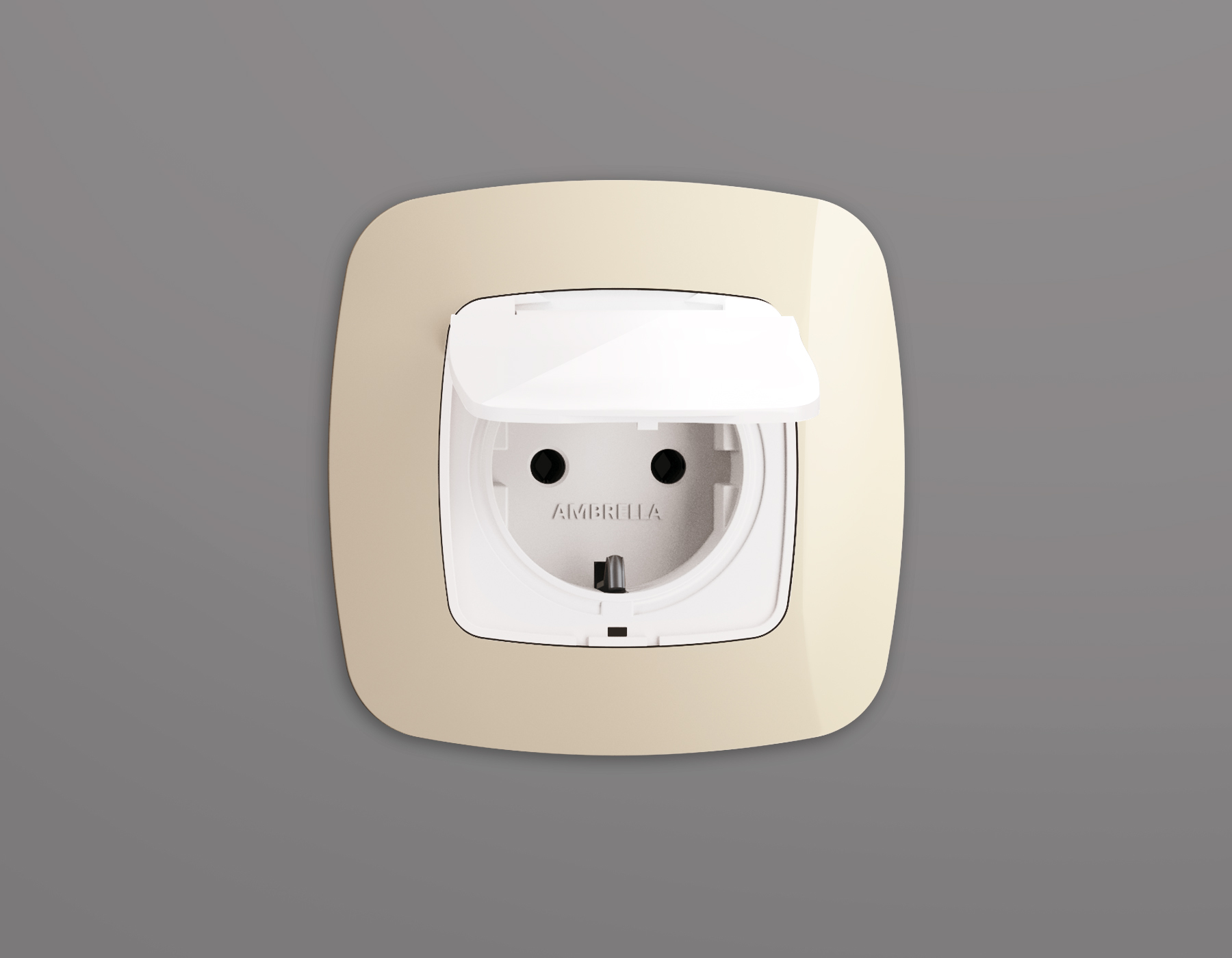 Купить "Лицевая панель для розетки с заземлением со шторками и крышкой IP44 Ambrella Volt Quant OMEGA OP1080"