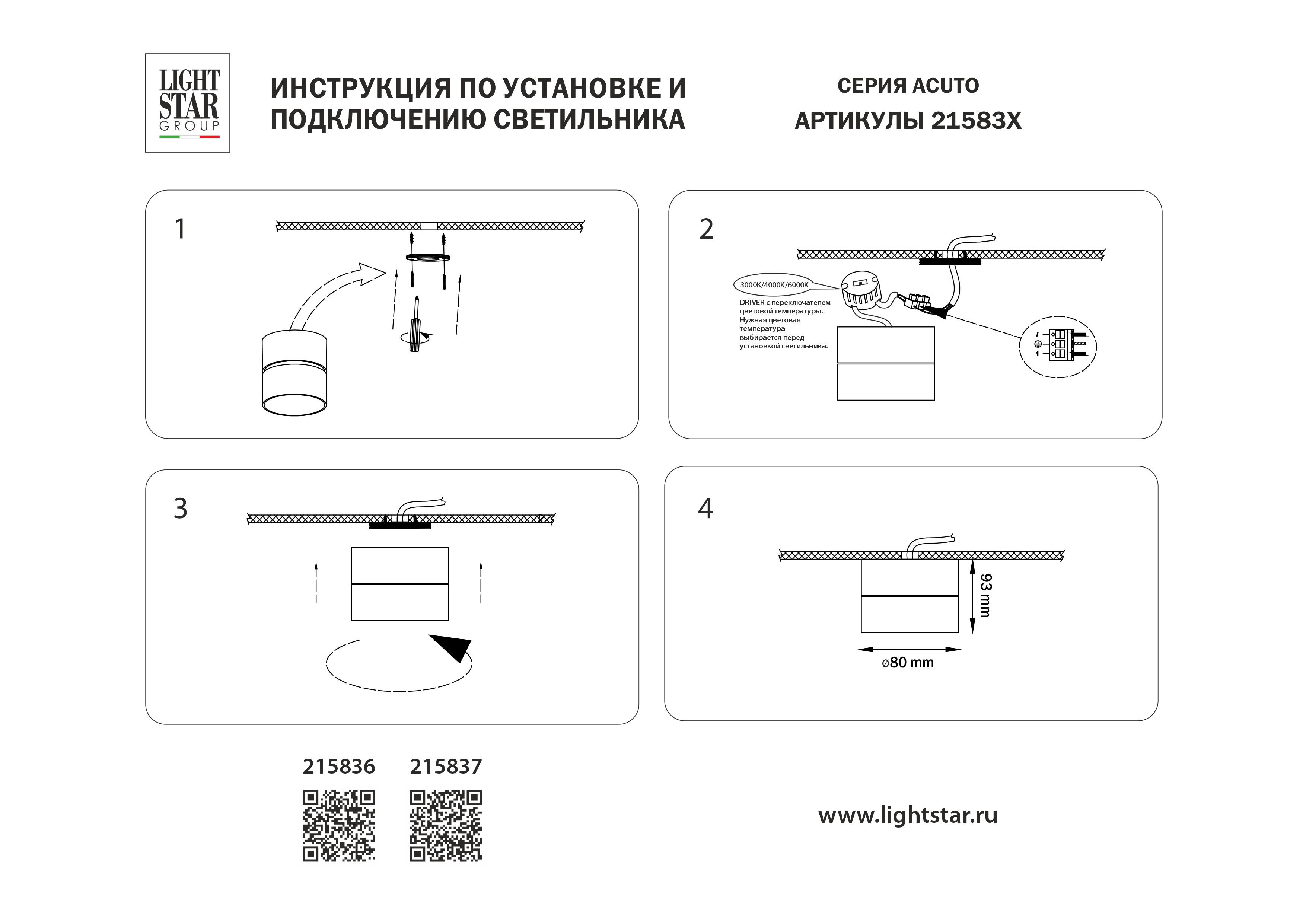 Накладной светодиодный светильник с переключателем света Lightstar Acuto 215836 в новосибирске