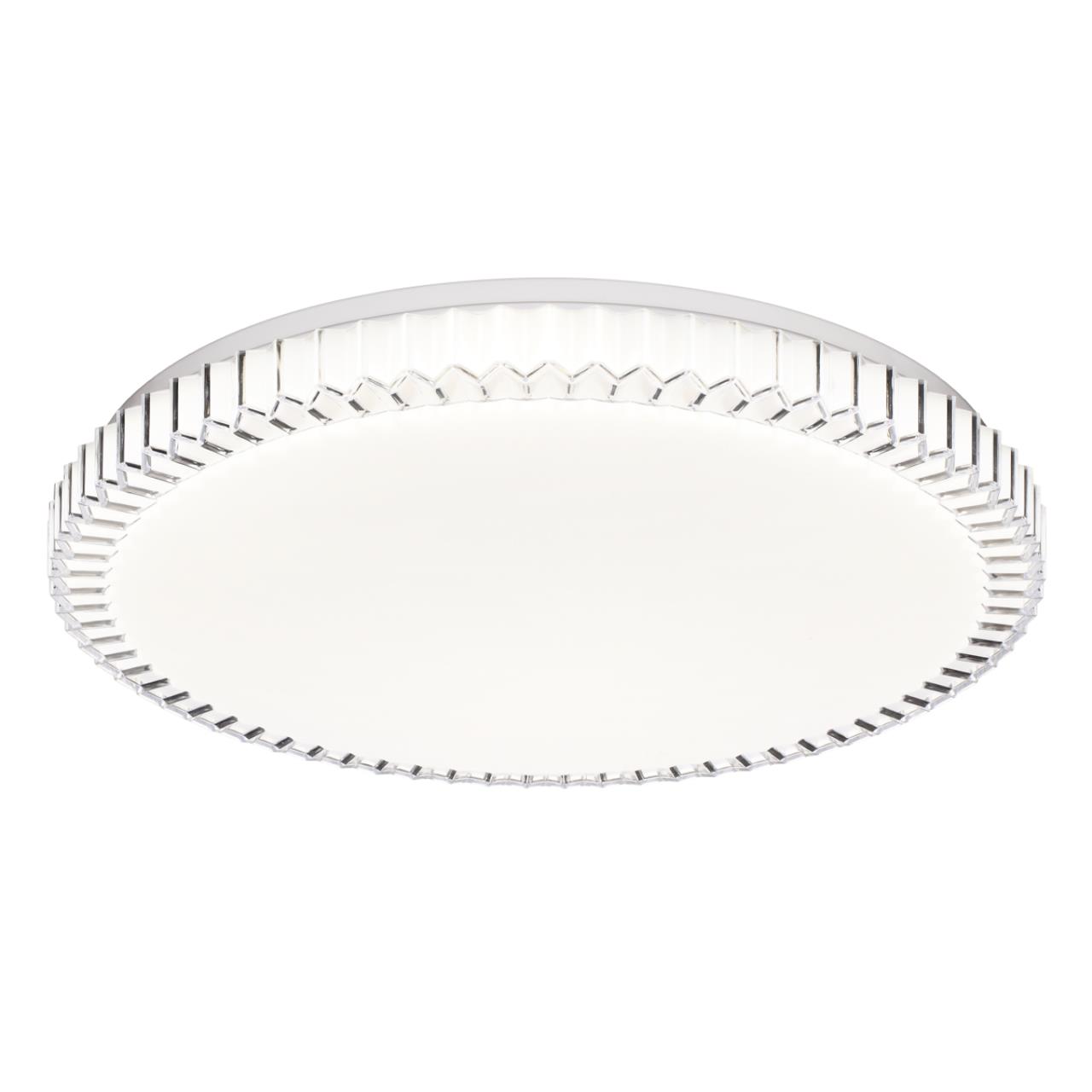 Светильник 7673/ELN линии ATIKO состоит из металлического основания (базы) и пластикового рассеивателя. Материал рассеивателя - высококачественный пластик марки PMMA 2.0 белого цвета с гладкой матовой поверхностью, обеспечивающий светильнику равномерное рассеивание и хорошее светопропускание. Форма плафона: круглая, декорирована рельефным ободом из пластика прозрачного цвета. Степень защиты IP43 позволяет использовать светильник в определенных зонах влажных помещений. В комплект входит LED модуль с линзами, мощностью 76Вт, которая соответствует лампе накаливания 740Вт. А также переключатель температуры цвета (ССT) на драйвере, с помощью которого осуществляется изменение цветовой температуры 3000/4000/6000К и переход светильника в режим теплого/белого/холодного света. Для установки необходимого режима рекомендуется использовать удлиненный тонкий предмет типа небольшой отвертки.
