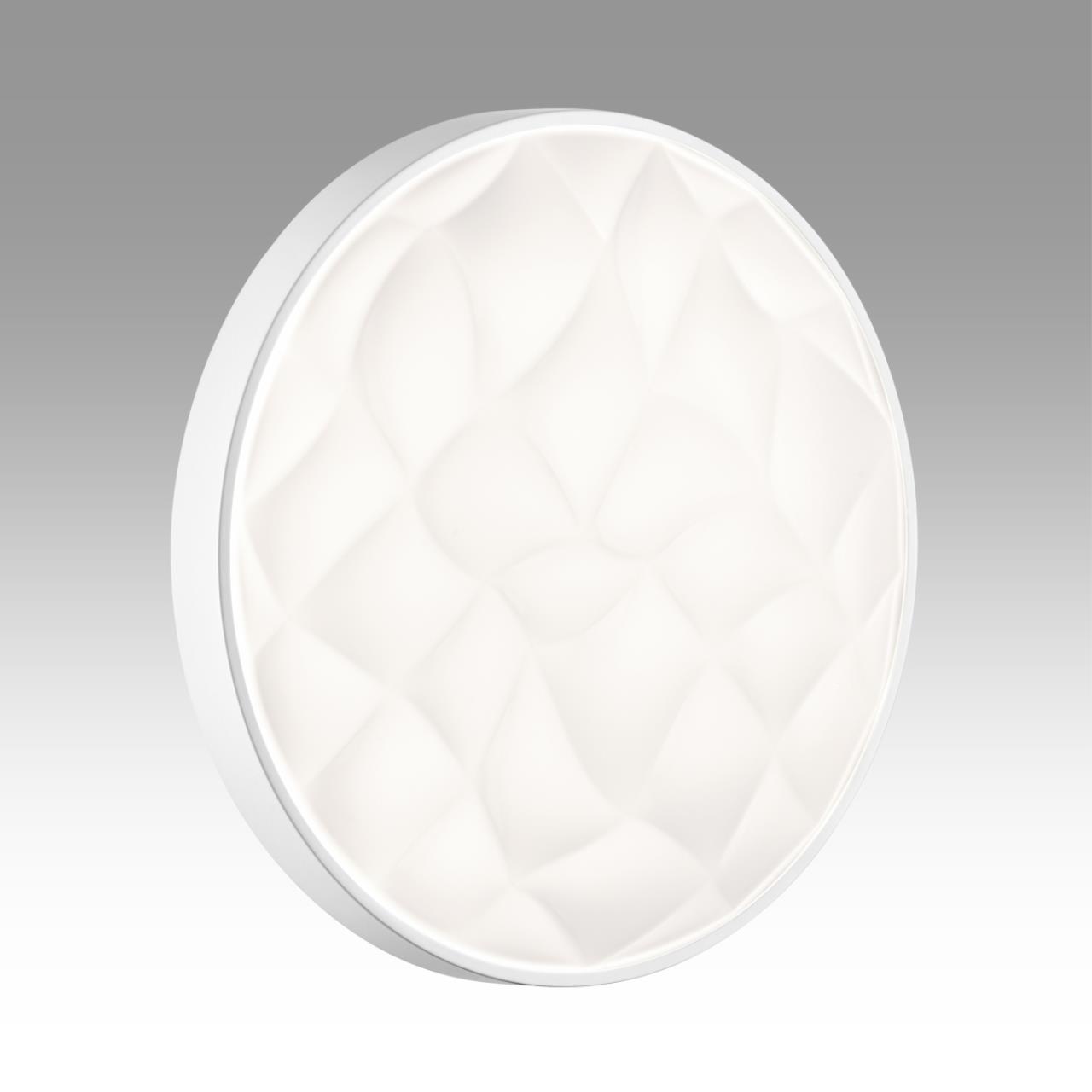 Светильник 7672/ELN линии GITUM состоит из металлического основания (базы) и пластикового рассеивателя. Материал рассеивателя - высококачественный пластик марки PMMA 2.0 белого цвета с матовой поверхностью. Пластик обеспечивает светильнику равномерное рассеивание и хорошее светопропускание. Форма плафона: круглая, декорирована рельефной структурой и ободом из пластика белого цвета. Степень защиты IP43 позволяет использовать светильник в определенных зонах влажных помещений. В комплект входит LED модуль с линзами, мощностью 76Вт, которая соответствует лампе накаливания 740Вт. А также переключатель температуры цвета (ССT) на драйвере, с помощью которого осуществляется изменение цветовой температуры 3000/4000/6000К и переход светильника в режим теплого/белого/холодного света. Для установки необходимого режима рекомендуется использовать удлиненный тонкий предмет типа небольшой отвертки.