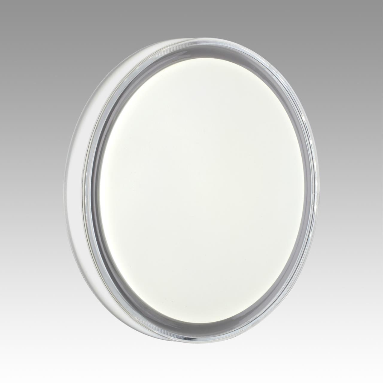 Светильник 7699/EL линии LAVEN состоит из металлического основания (базы) и пластикового рассеивателя. Материал рассеивателя — высококачественный пластик марки PMMA 2.0 белого цвета с матовой поверхностью без текстуры. Пластик обеспечивает светильнику равномерное рассеивание и хорошее светопропускание. Форма плафона: круглая, декорирована светопропускающим ободом из гладкого пластика белого цвета. Степень защиты IP43 позволяет использовать светильник в определенных зонах влажных помещений. В комплект входит заменяемый LED-модуль с линзами мощностью 70 Вт, соответствующей лампе накаливания 610 Вт, а также пульт ДУ (с креплением на стену), с помощью которого осуществляется плавное изменение цветовой температуры в диапазоне 3000—6000 К, изменение яркости, переход в режим переключения теплого/белого/холодного/ночного света. Светильник имеет функцию памяти.