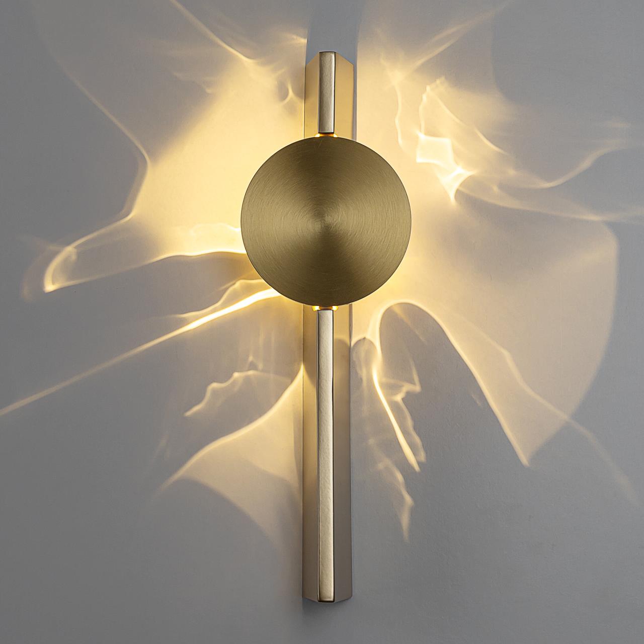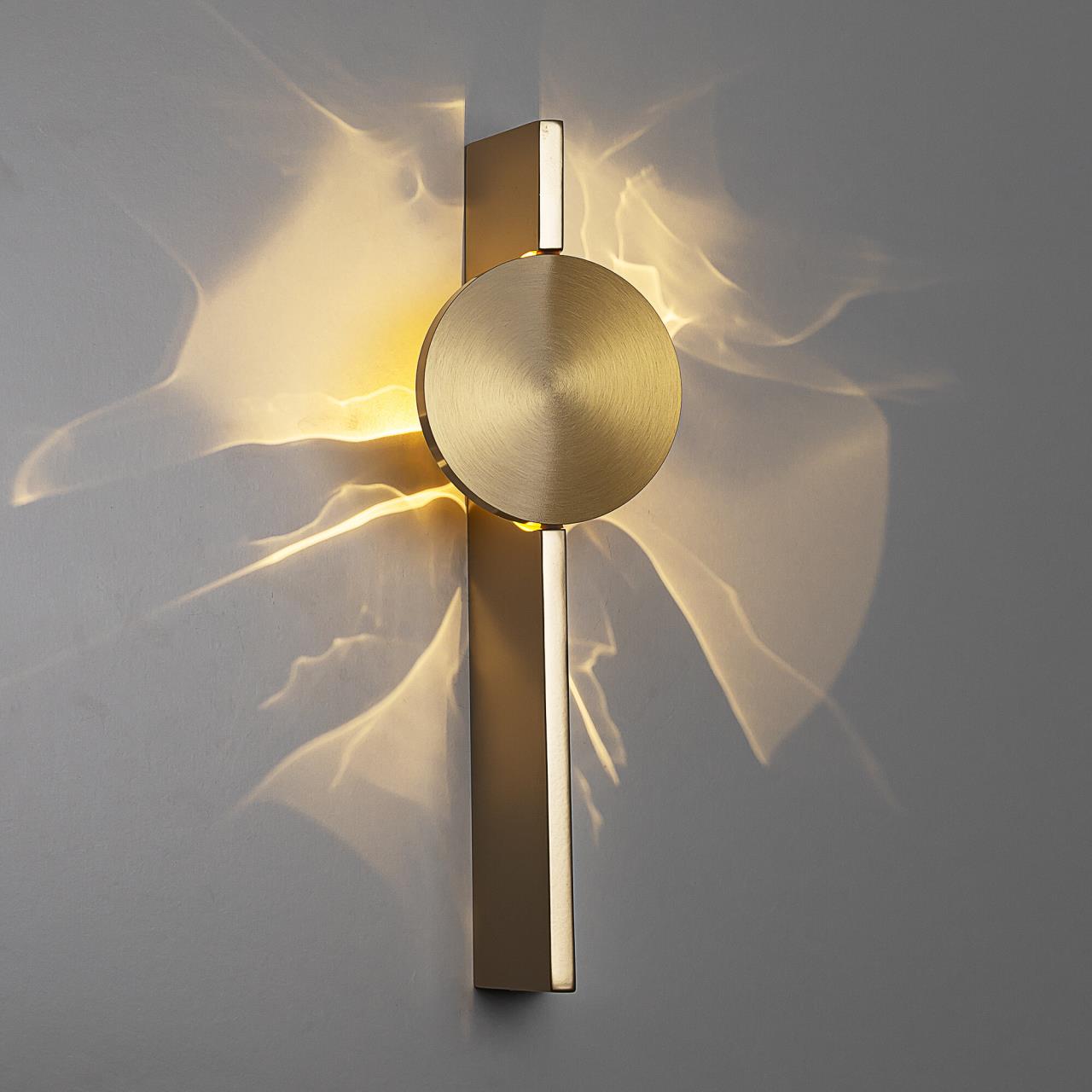 Тонкий металлический корпус матового золотого цвета имеет форму трапеции, благодаря чему светильники выглядят невесомыми и практически незаметными в интерьере. Встроенный светодиод мощностью 3Вт обеспечивает равномерное распределение света, без мерцания и пульсаций.
