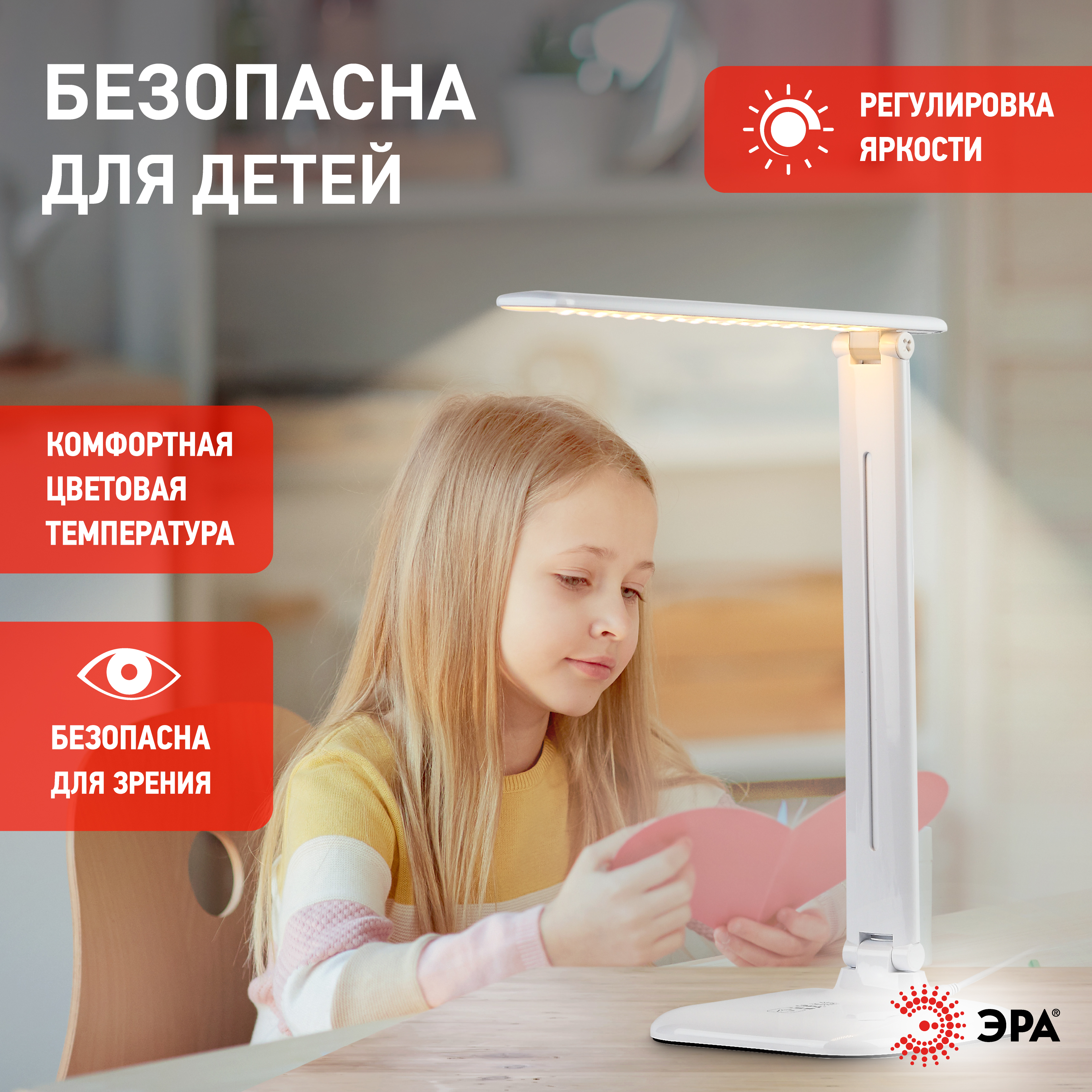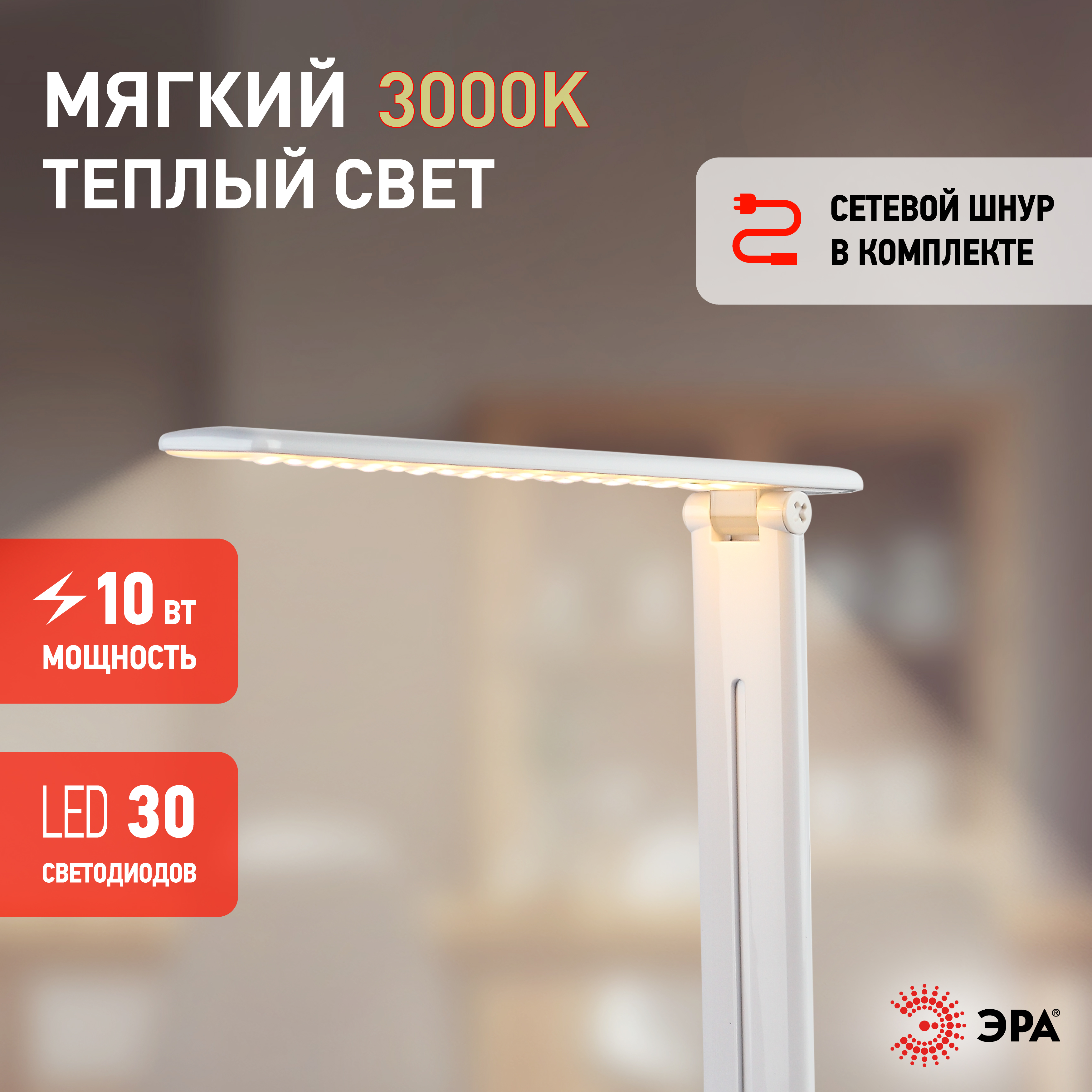Офисные настольная лампа российского производителя ЭРА, коллекция - NLED-462, модель - NLED-462-10W-W, стиль светильника - современный.