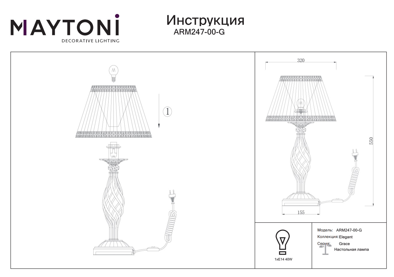 Данную модель ARM247-00-G с быстрой доставкой спешите купить по цене 10 762 ₽ в магазине 220svet.ru
