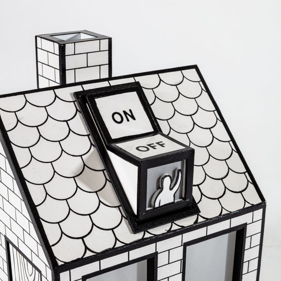 Настольная лампа On-Off Lamp из переработанного картона. Дизайнер Tomas Schats, придумавший светильник On-Off, говорит: В детстве я смотрел из чердачного окошка на дома на другой стороне улицы. Семьи собирались в своих домах после рабочего и учебного дня. Постепенно (один за другим) они включали в домах свет. Ребенком я думал о том, чтобы включать там свет самому, нажимая на мансардные окна.
