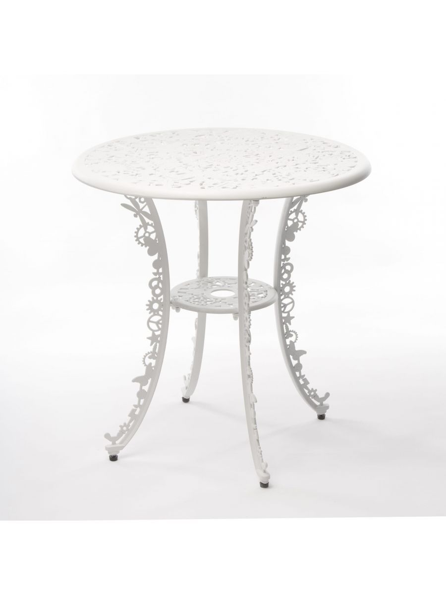 Столик из коллекции Industry, белого цвета из литого алюминия. Романтические и неподвластные времени формы классической викторианской садовой мебели. Максимальное представление стиля Pop, разработанного Студией Job. Более классическая садовая мебель теперь модная и яркая, настоящее дизайнерское произведение искусства.
