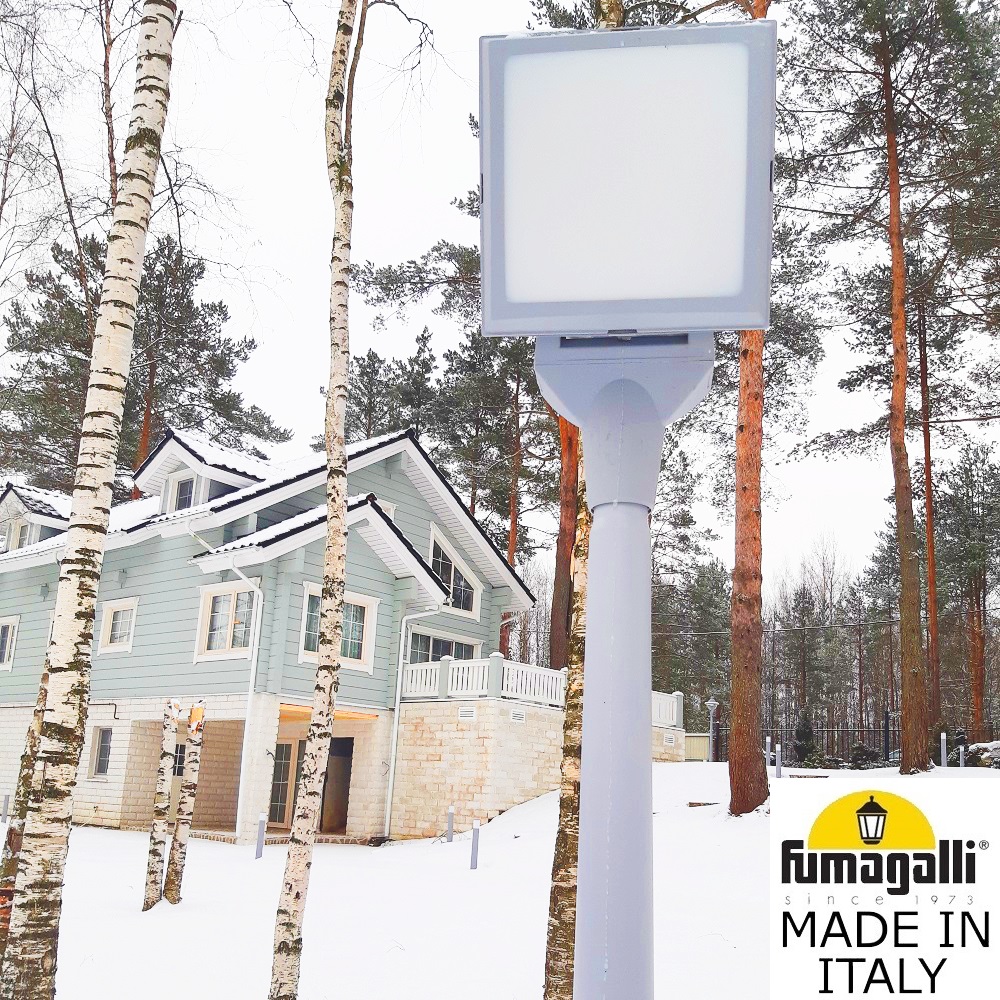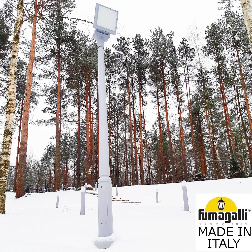Парковый фонарь FUMAGALLI большого размера серии GIORGIO, модель EKTOR 2500/GIORGIO. Парковый фонарь - прожектор среднего размера в современном стиле на столбе EKTOR. В качестве источников света используются 2 лампы с стандартным цоколем Е-27, возможна регулировка наклона светильника. Предназначен для освещения парковых дорожек, cкверов, садовых и ландшафтных композиций, и других общественных пространств. Используется в качестве основного уличного освещения на городских улицах и площадях. Благодаря регулируемому углу наклона может применяться для подсветки зданий. Парковые светильники изготовлены в Италии, по уникальным технологиям "FUMATECH" из современного композитного полимера RESIN. Этот материал в 5 раз прочнее силумина, не ржавеет, не окисляется, не выгорает на солнце, его не нужно красить. Все светильники пыле-влаго защищены по стандарту IP65 (Пыленепроницаемые, защита от водяных струй с любого направления). Рассеиватель выполнен из антивандального, не мутнеющего и не горючего PMMA (ПолиМетилМетаАкрилат). Срок службы светильника - не менее 20 лет. Температура использования от -60 до +90. В серии GIORGIO есть ландшафтные фонари в настенном и потолочном исполнении (GUSEPPE, GIOVA/GUSEPPE) а так же двойной прожектор на столб ROSA. Парковые опоры имеют в основе мощную стальную трубу с двойной оцинковкой и монтажный люк. Закладные элементы- в комплекте.