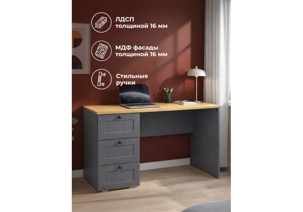Письменный стол Woodville Опра серый графит / дуб золотой craft 676811 в новосибирске
