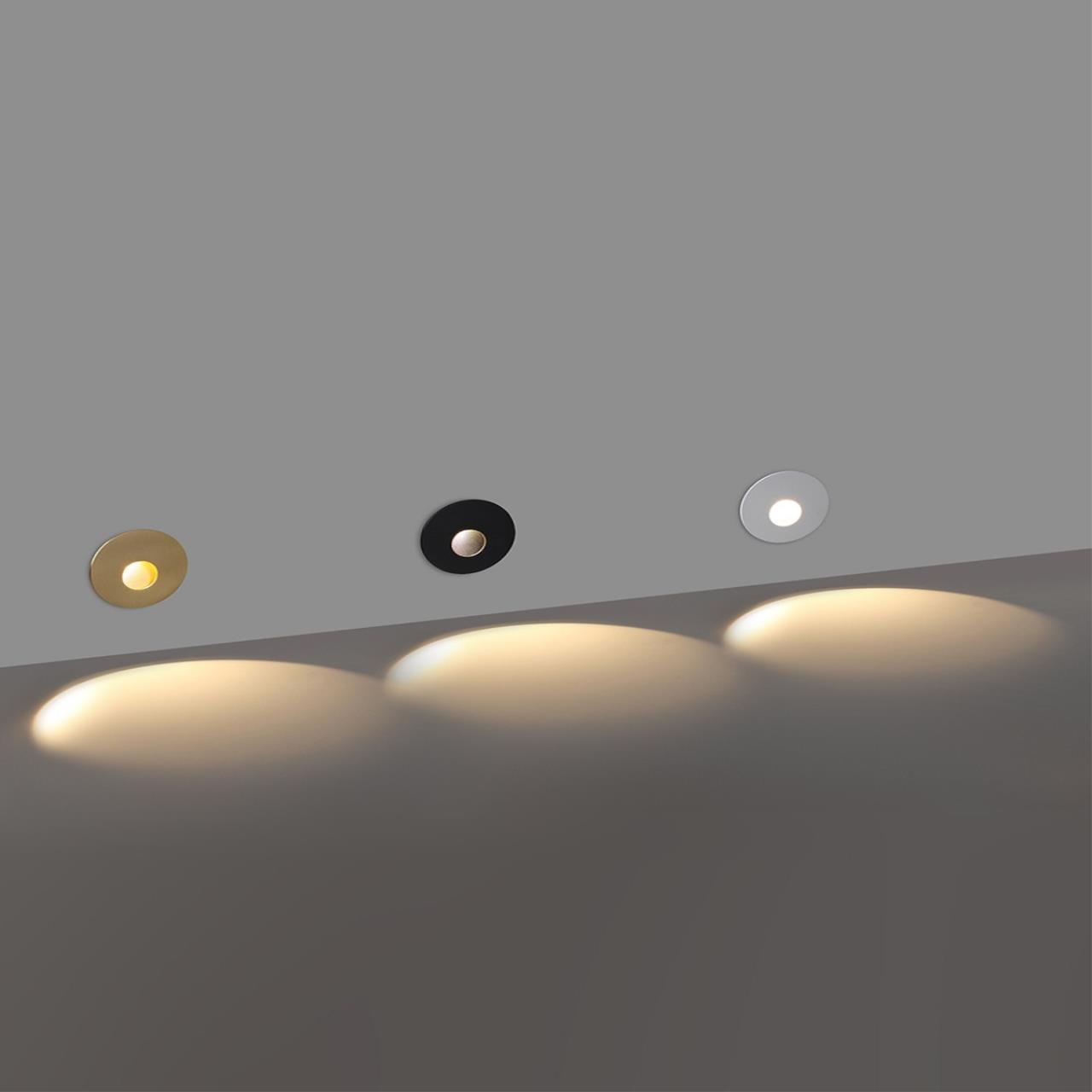 Если хотите максимально широкий луч от встраиваемых подсветок, то вам идеально подойдут подсветки Escala в округлой форме. Они выполнены в трех цветах: черном, белом и под латунь. CRI ≥ 90, LED-чипы бренда OSRAM. Монтажная коробка из алюминия входит в комплект. При использовании данных светильников необходимо помнить, что чем выше светильник, тем больше размеры луча. Так, на высоте 22 см светильник дает длину луча до 90 см в широкой части, на высоте 7 см ― длина луча до 40 см.
