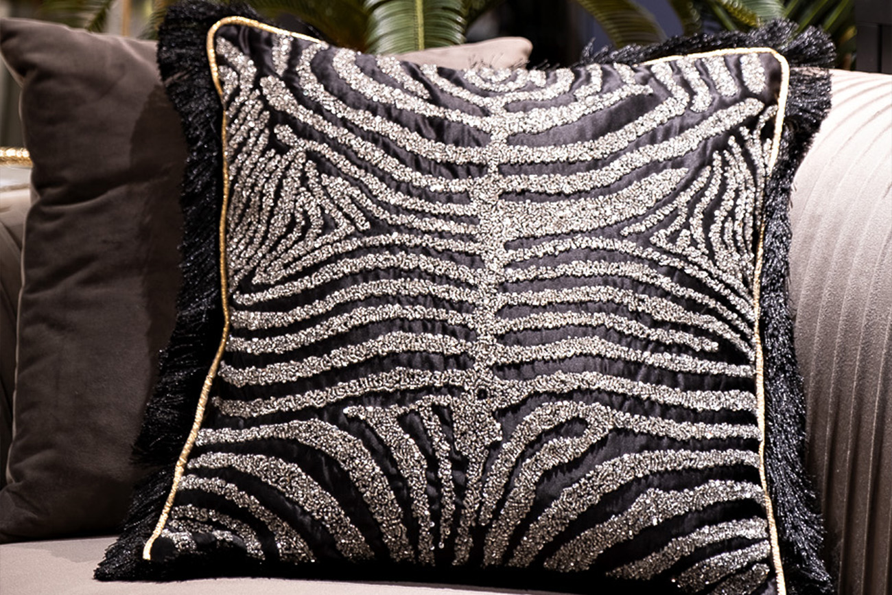 Декоративная подушка с оригинальным вышитым узором «зебра» добавит интерьеру индивидуальности и игривости. Она идеально впишется в стилистику ар-деко, неоклассика, шебби-шик, эклектика, фьюжн. Подушка, вышитая бисером, украсит собой диван или кресло, внесет в обстановку нотку изысканного шика. Анималистичный принт – актуальный тренд в интерьерной моде. Он органично вписывается в стилистическую концепцию современной гостиной, спальни, лаундж-зоны, рабочего кабинета.
