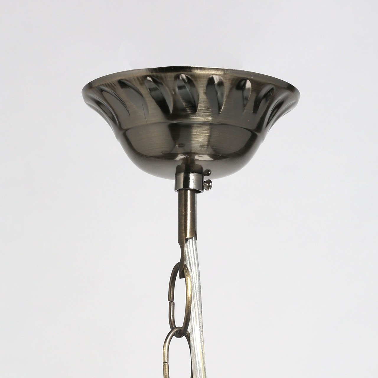 Отсутствие закрытых плафонов обеспечивает высокий уровень освещенности: потолочная лампа может быть использована в комнате площадью до 24 кв. м. Несмотря на внушительные размеры, она весит всего 2.8 кг. Оригинальный дизайн дополнят восемь ламп с цоколем E14 в форме «свеча» или «свеча на ветру», устанавливаемых по всему периметру светильника. Его высота регулируется за счет звеньев цепи.