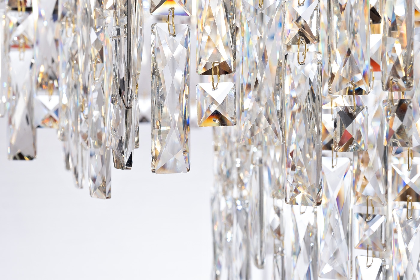 Подвесная люстра – роскошное сочетание сверкающего стекла и позолоченного металла. Она полностью отвечает интерьерной моде и традициям стилистики ар-деко. Эффектная потолочная люстра с подвесками из прозрачного стекла станет одним из ключевых декоративных элементов комнаты. Она идеально подойдёт для просторной гостиной, столовой, холла. Стеклянная люстра в стиле ар-деко добавляет в обстановку нотку аристократизма и элегантного шика. Это прекрасный подарок и выгодная инвестиция в эстетику окружающего пространства