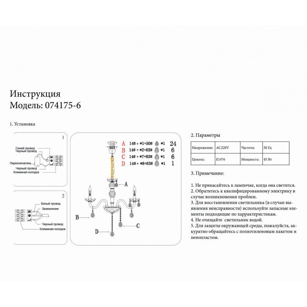 - Количество ламп: 6 шт