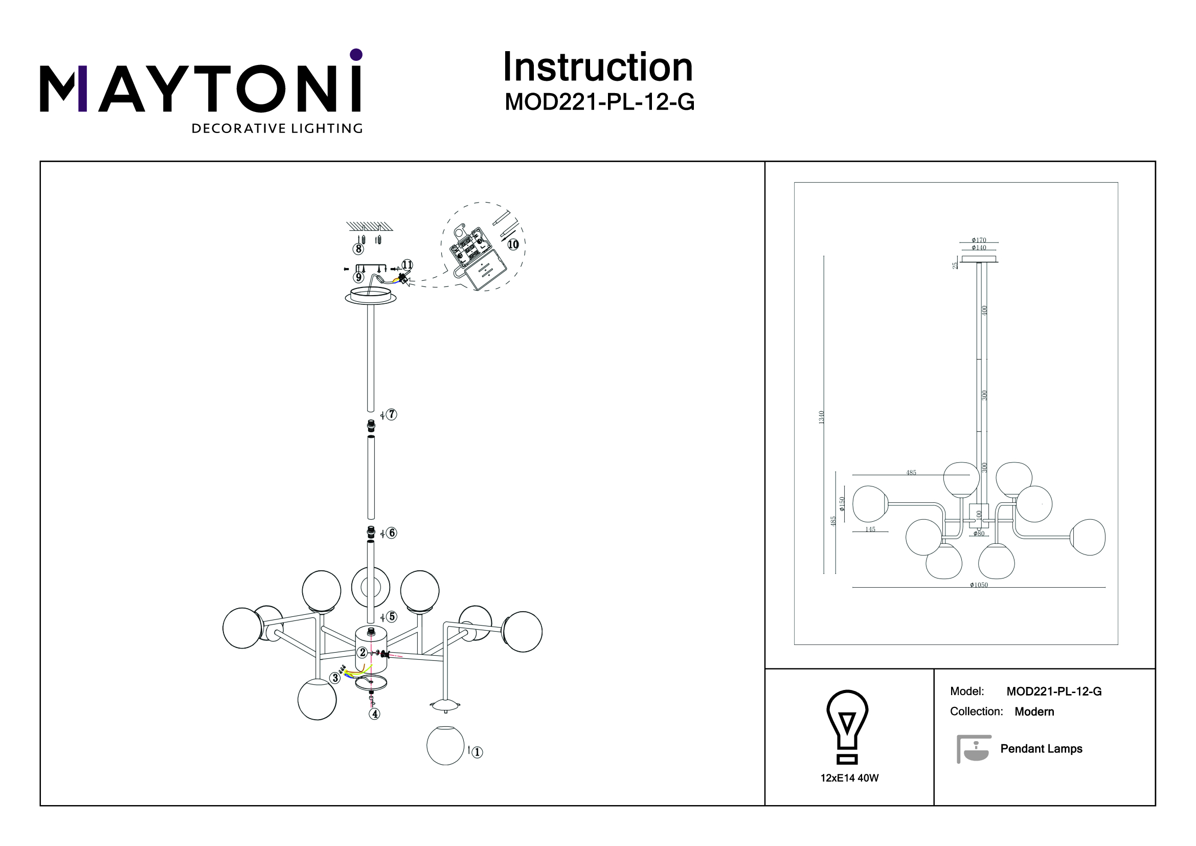 Купить "Подвесная люстра Maytoni Erich MOD221-PL-12-G"