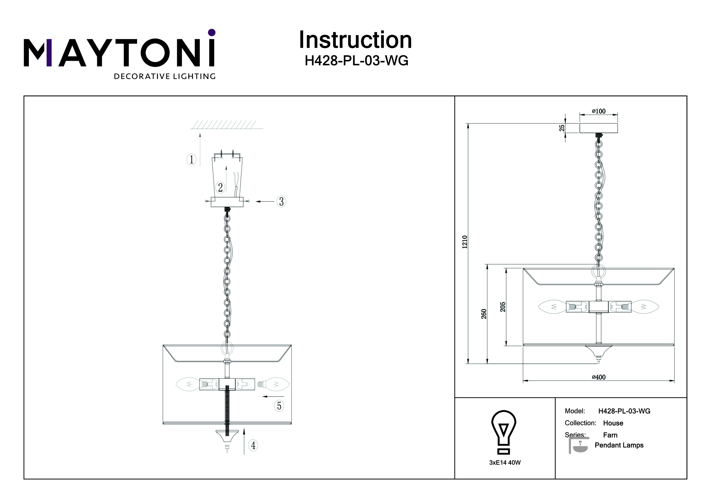 Купить "Подвесная люстра Maytoni Farn H428-PL-03-WG"