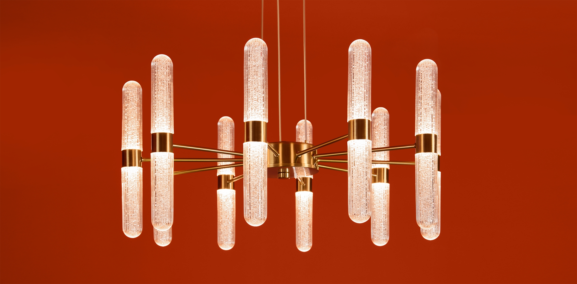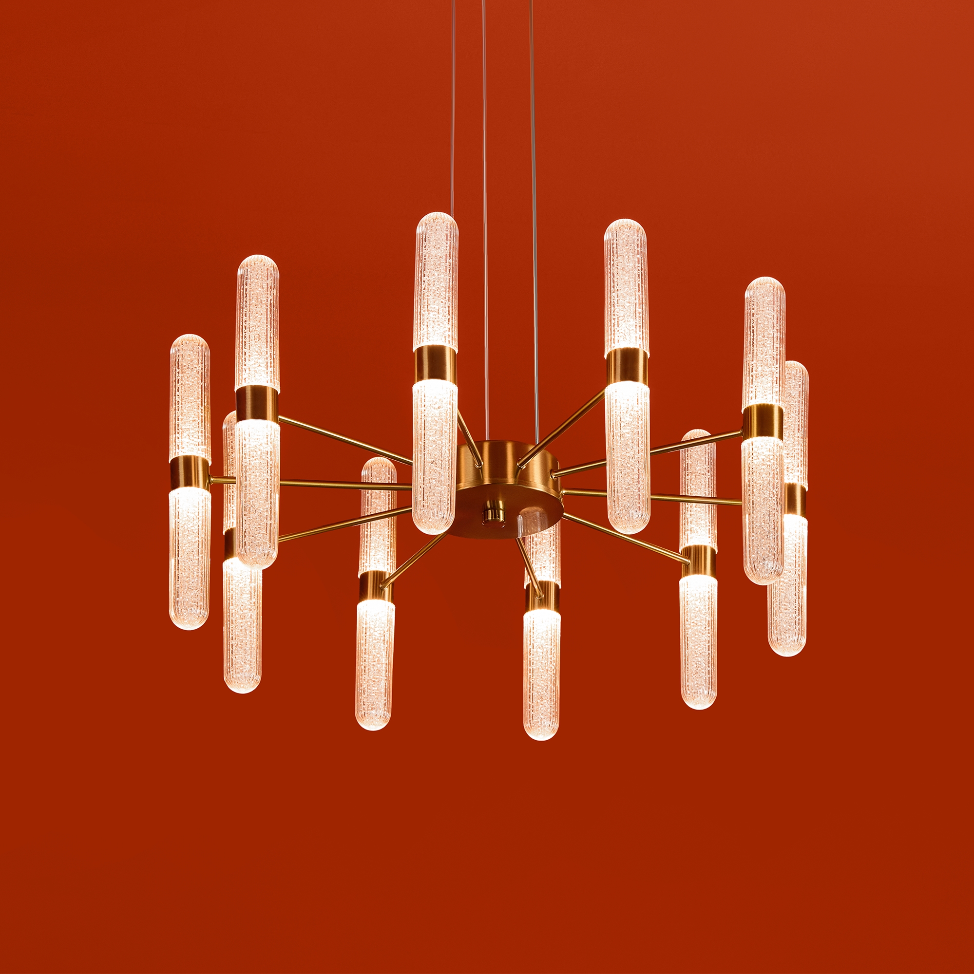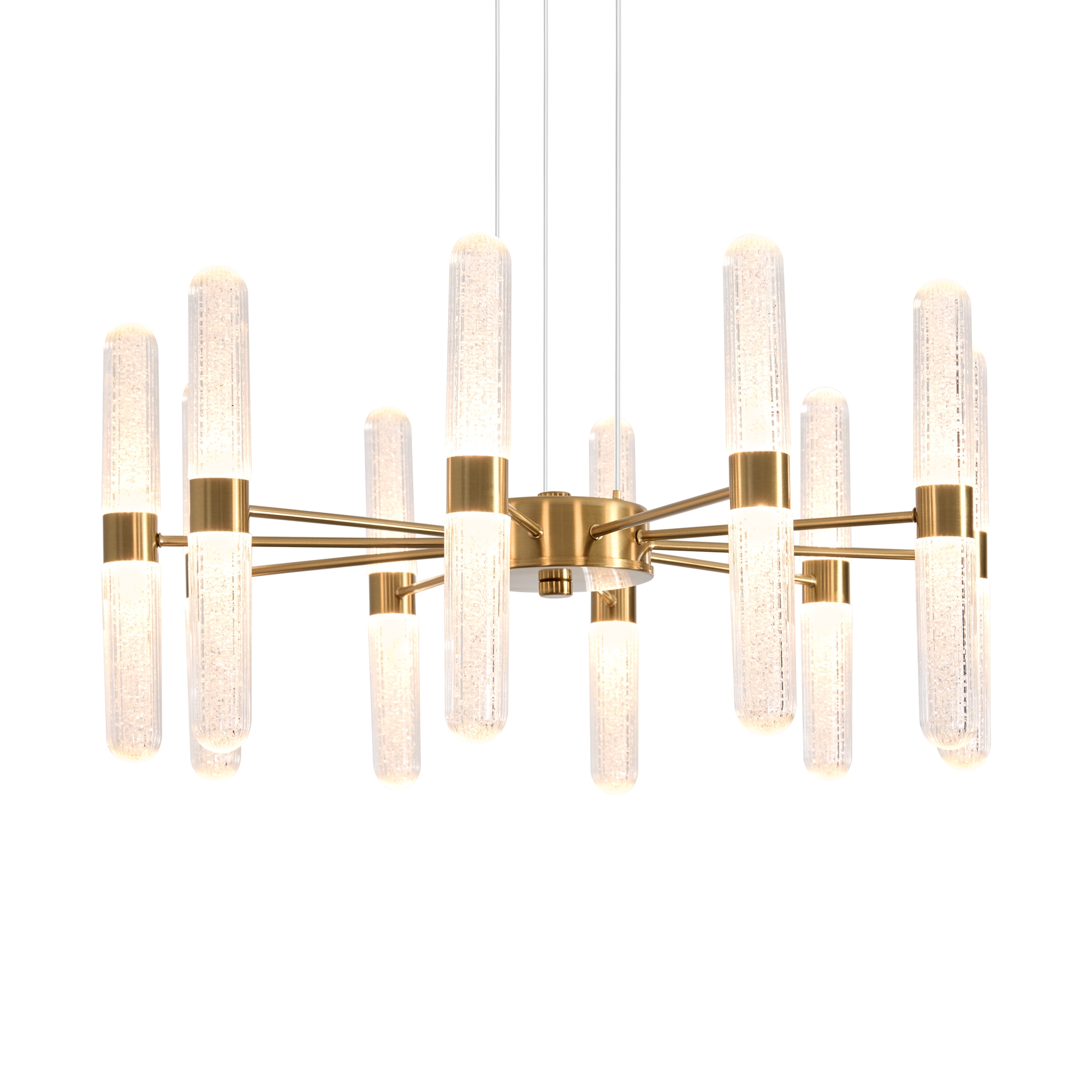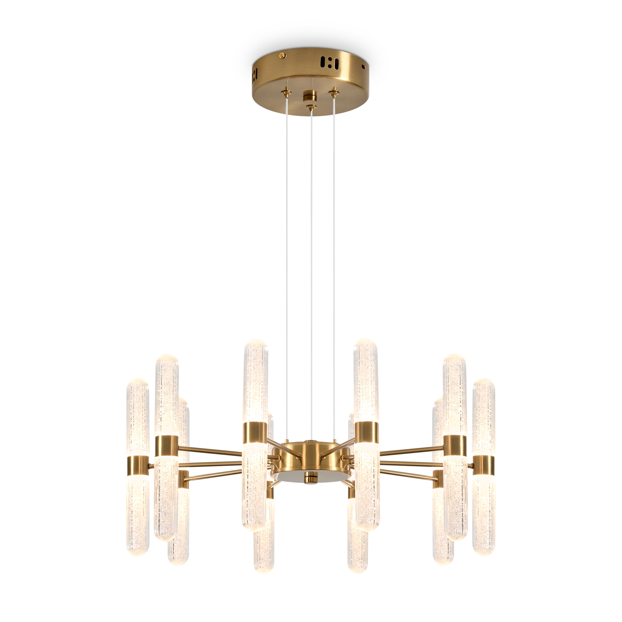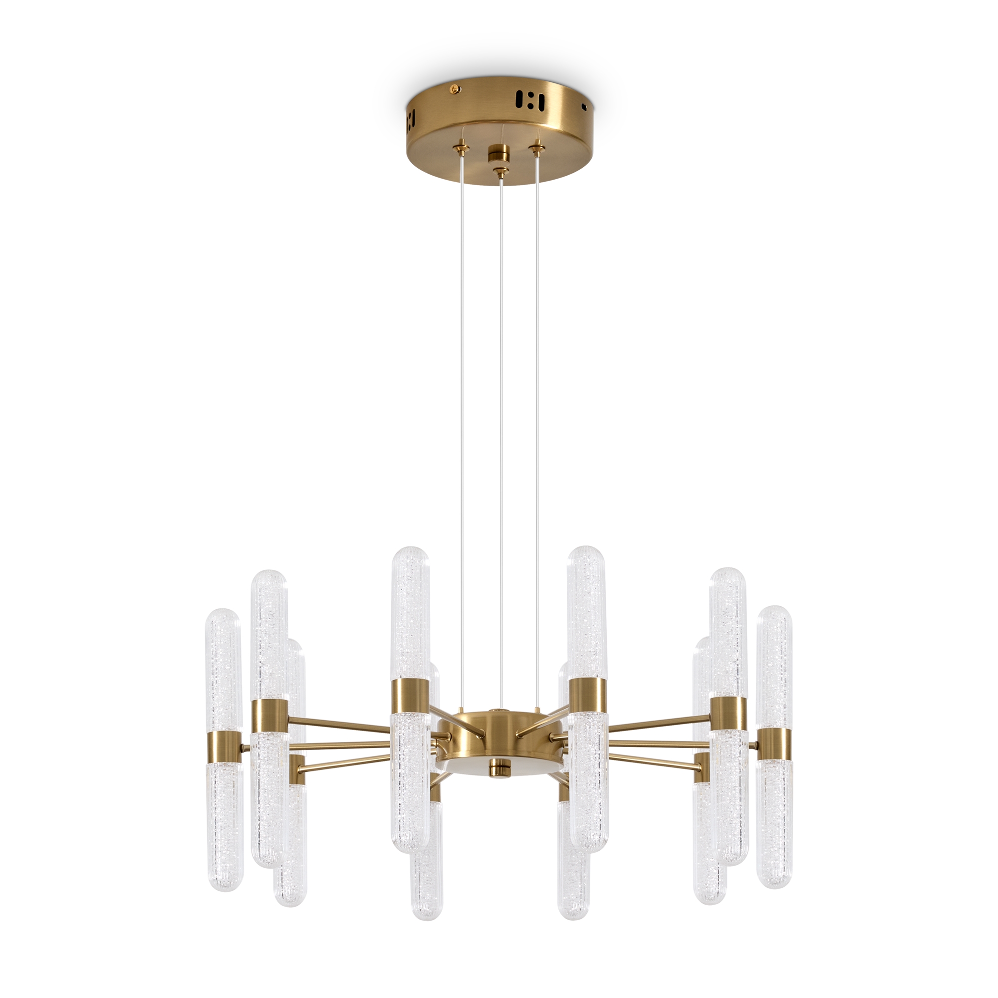 Арматура - металл в цвете латунь и никель. Основной акцент в дизайне люстр Alias сделан на акриловые плафоны, эффект пузырьков. Встроенный LED модуль 2700K. 2 дизайна подвесных светильников.