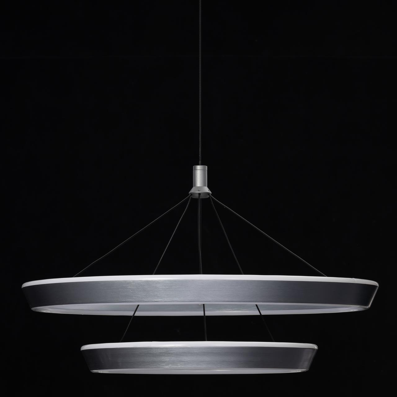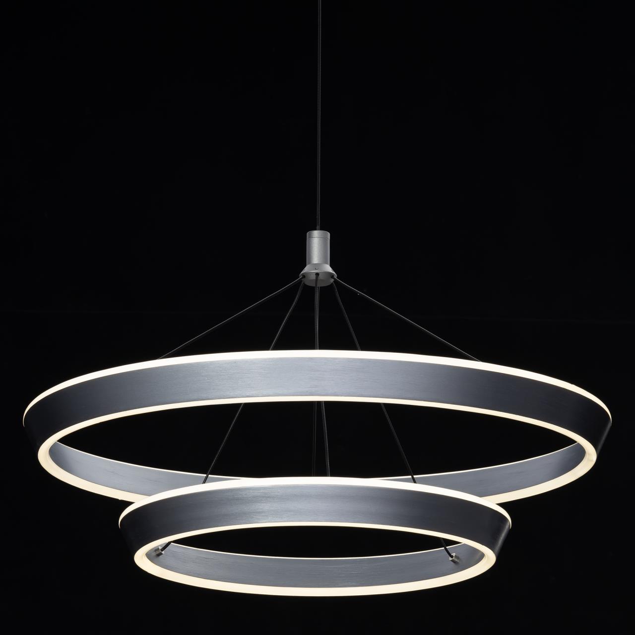 Светодиодная люстра с двумя подвесными кольцами CL717013 от производителя Citilux относится к коллекции Tavi выполнена в современном стиле. Каждое кольцо - светодиодный модуль, изготовленный из алюминиевого профиля благородного серого цвета, рассеиватель из матового оптического полимера. Наличие источников света с двух сторон профиля позволяет равномерно осветить всё помещение. Мощность изделия 80Вт, световой поток 5000Лм, цветовая температура 4000К – нейтральный белый свет. Мягкий комфортный свет, безопасный для глаз, без мерцания и пульсаций. Высота светильника легко регулируется при установке, что позволяет использовать его в помещениях как с высокими, так и с низкими потолками. Крепление подходит для всех видов потолков, в том числе натяжных, тип крепления – планка , страна бренда Дания . Купить модель CL717013 спешите в интернет магазине 220svet.ru