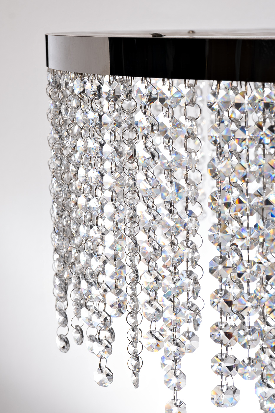 Люстра CASCADA представляет собой предмет интерьерного искусства, в котором дизайнеры воплотили самые актуальные идеи. Слои стеклянный подвесок, объединенных лаконичными хромированными кольцами, визуально напоминает водопад, низвергающийся уступами. Мелкие округлые кристаллы из стекла создают неповторимую игру света. Такой осветительный шедевр подойдет для размещения в современных и неоклассических помещениях с высокими потолками – гостиных, холлах, столовых комнатах.