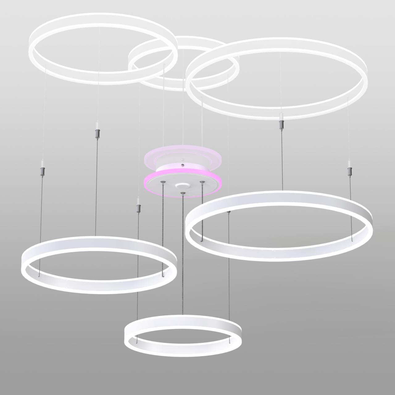 Подвесная светодиодная люстра кольца CL719A700 от производителя Citilux относится к коллекции Дуэт Смарт с голосовым управлением является ярким представителем современных УМНЫХ осветительных устройств экосистемы Citilux SMART. Моделью можно управлять: из приложения на смартфоне по Wi-Fi при наличии интернета, с помощью голосовых помощников Алиса и Маруся, а также пультом дистанционного управления и настенным выключателем. Люстра на тросах, с тремя светодиодными модулями в форме колец. Конструкция изделия позволяет при монтаже установить кольца на разной высоте и на разном удалении от базы, сформировав свой индивидуальный, неповторимый внешний вид светильника. Корпус металлический из алюминиевого сплава цвет белый матовый, рассеиватель из оптического полимера. Крепление люстры подходит для всех типов потолков, в том числе натяжных , страна бренда Дания.Купить модель CL719A700 спешите в интернет-магазине 220svet.