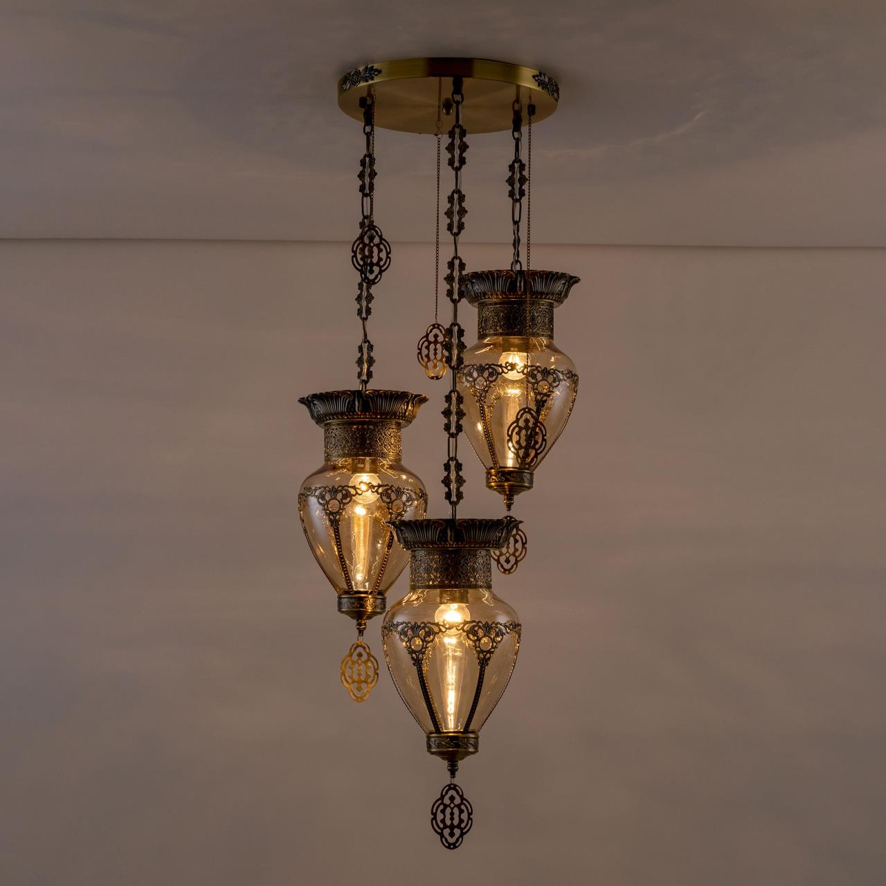 Восточный каскадный светильник CL419233 от производителя Citilux относится к коллекции Каир с тремя подвесными плафонами. Корпус металлический, цвет бронза. Плафоны оригинальной формы, изготовлены из прозрачного стекла медового оттенка, украшены декоративными, ажурными элементами. В изделии используются лампы с цоколем Е27, максимальной мощностью для ламп накаливания 75Вт. Светодиодные лампы можно устанавливать более яркие. Модель подходит для всех типов потолков, в том числе натяжных. Тип крепления – планка. Люстра Каир CL419233 прекрасный вариант для атмосферного освещения интерьеров квартир и загородных домов, выполненных в восточном стиле. Это великолепное решение при оформления уютных кафе, баров и ресторанов , страна бренда Дания.Купить модель CL419233 спешите в интернет-магазине 220svet.