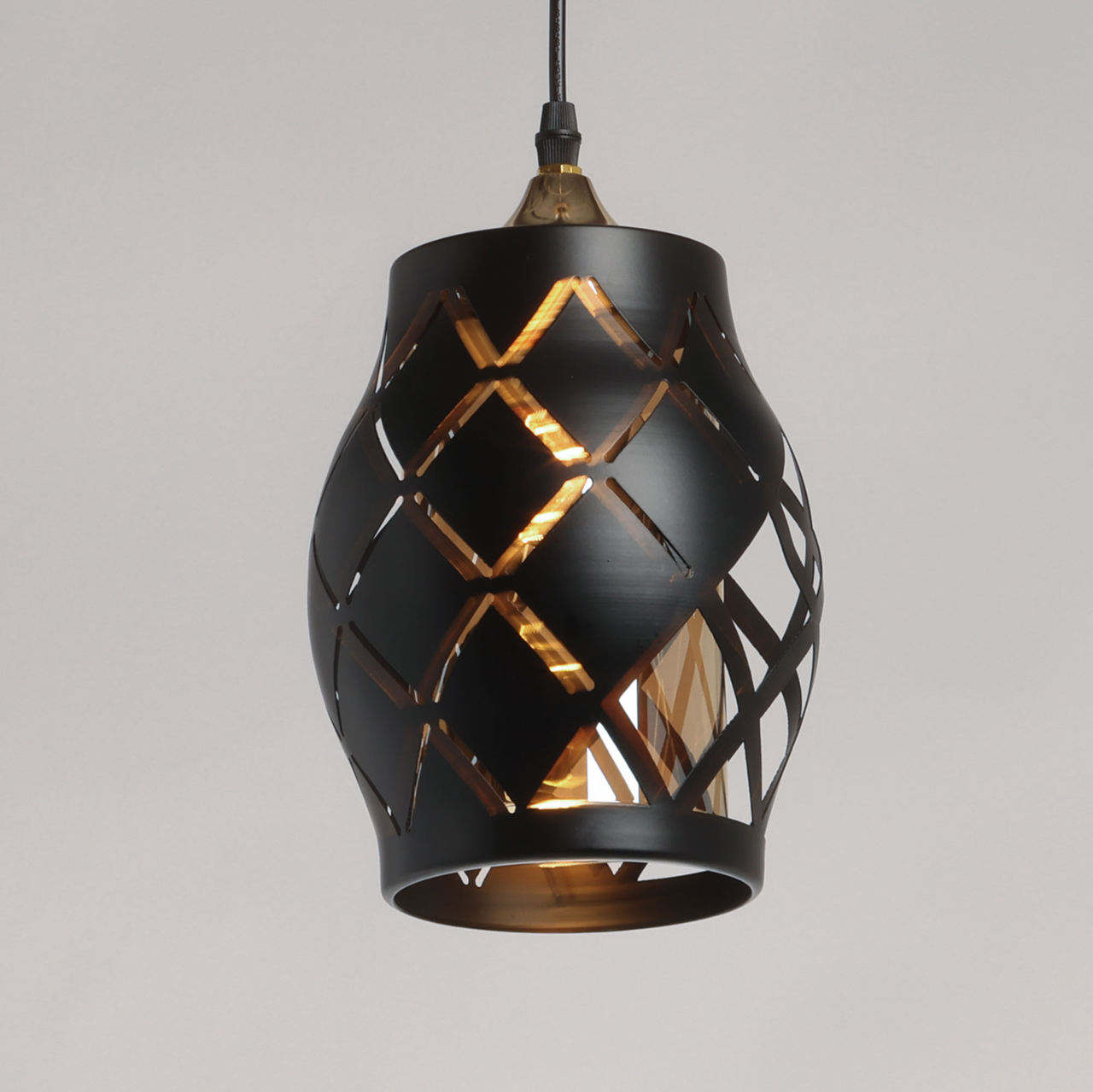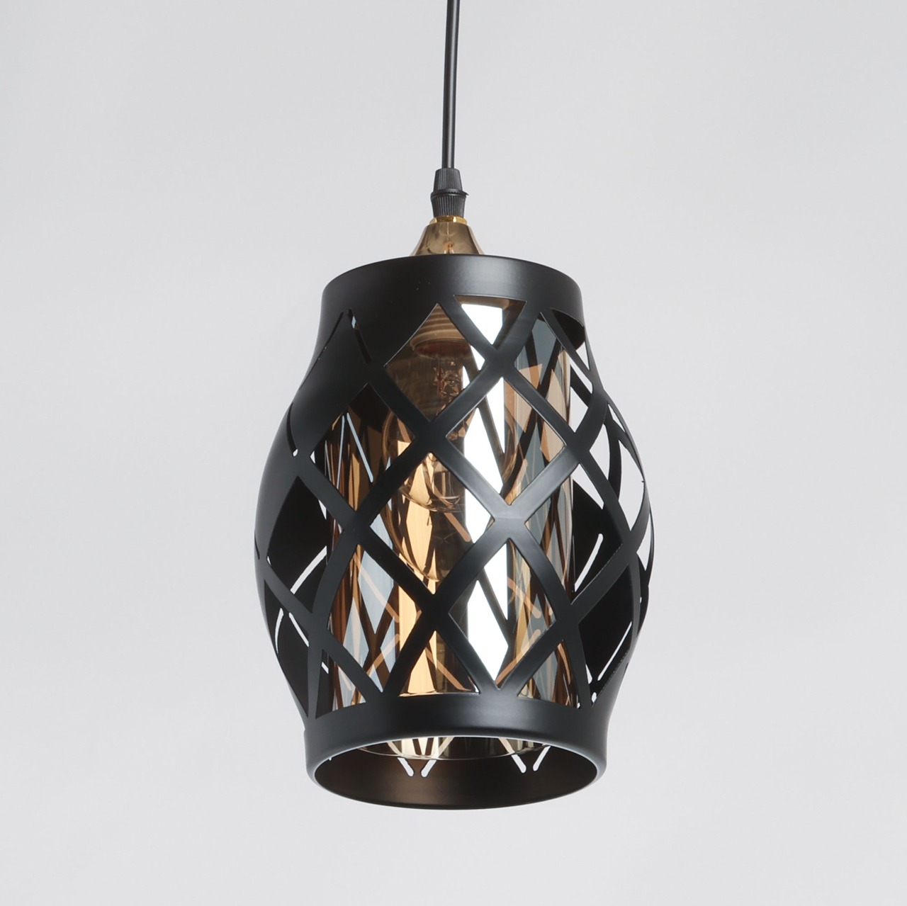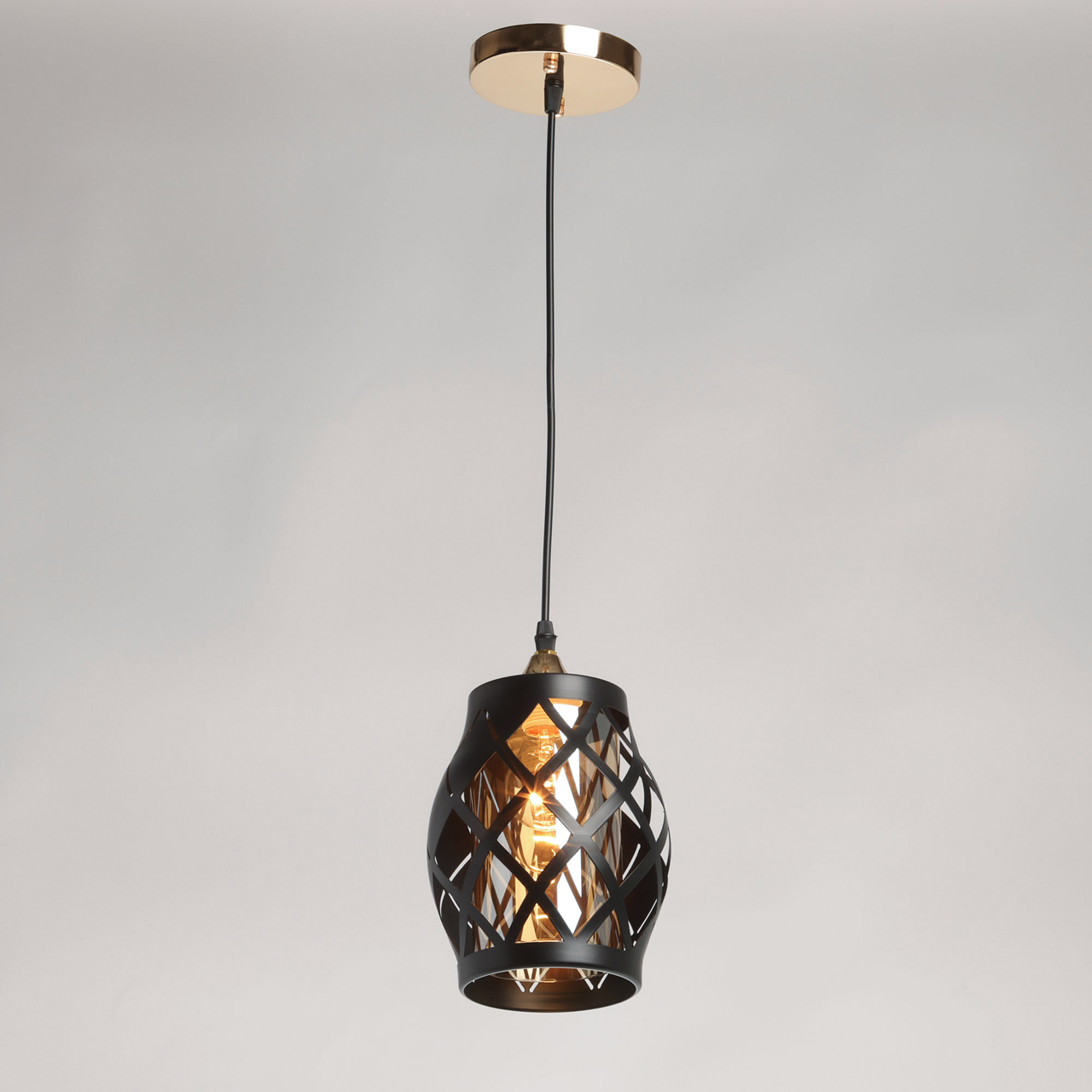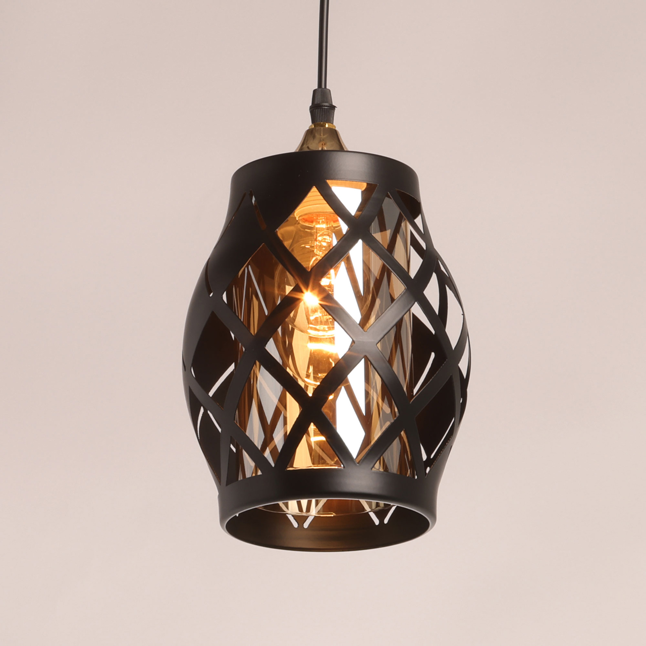 Одиночный подвес создает комфортное зональное освещение. Сочетание на контрасте матового черного цвета и глянцевого цвета золота эффектно выделяет подвес на потолке.Черный цвет металлического плафона актуален в стиле лофт и в брутальном интерьере.Стеклянный плафон цвета шампань мягко преломляет свет.Заменяемый источник света удобен в эксплуатации.Возможность устанавливать комфортную высоту.
