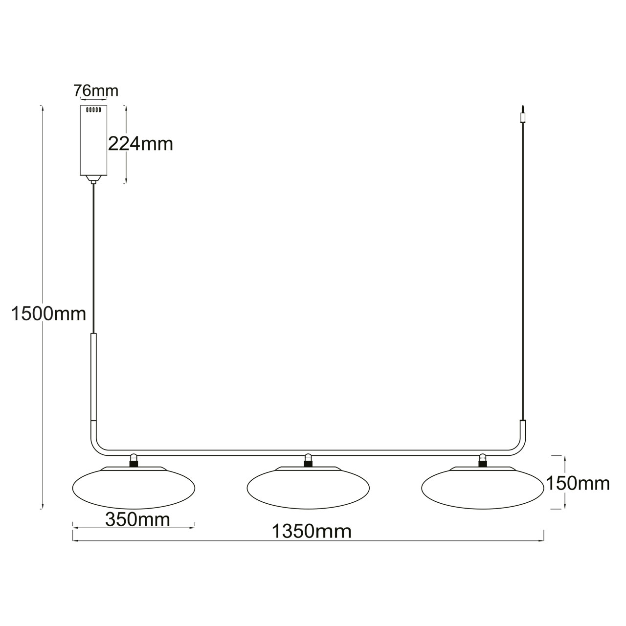 - Высота: 1500 мм (150 см)