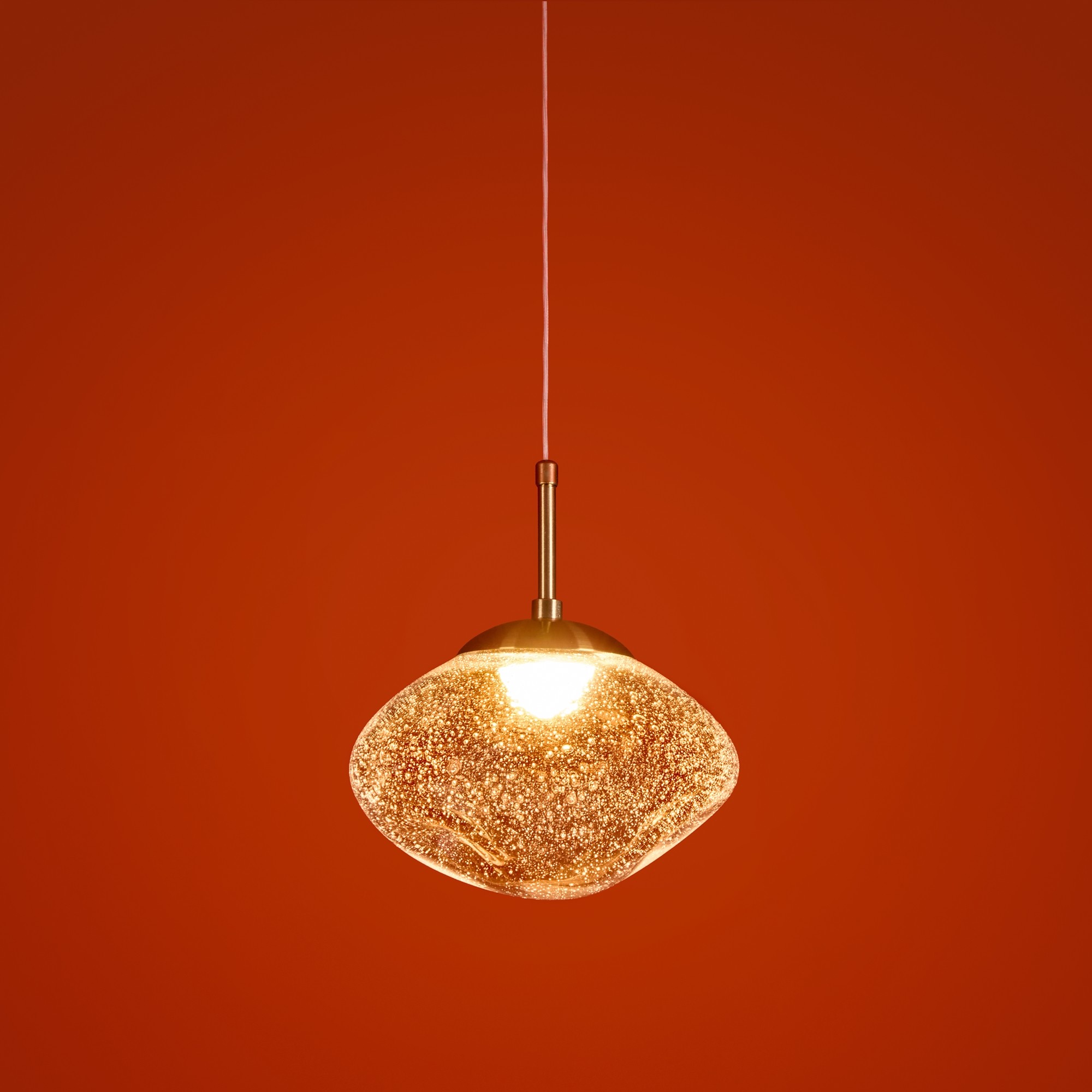 Арматура — металл. Стеклянные плафоны с пузырьками в трёх цветах: дымчатый, прозрачный, янтарный. Интегрированный LED источник света 3000К, Ra 80, угол 180°. Высота регулируется.