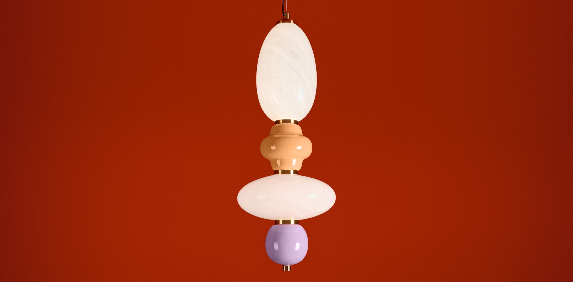 Металлическая арматура черного цвета. Глянцевые белые стеклянные плафоны с перламутровым рисунком и керамическими цветными элементами. LED источник света. Два вида подвеса.