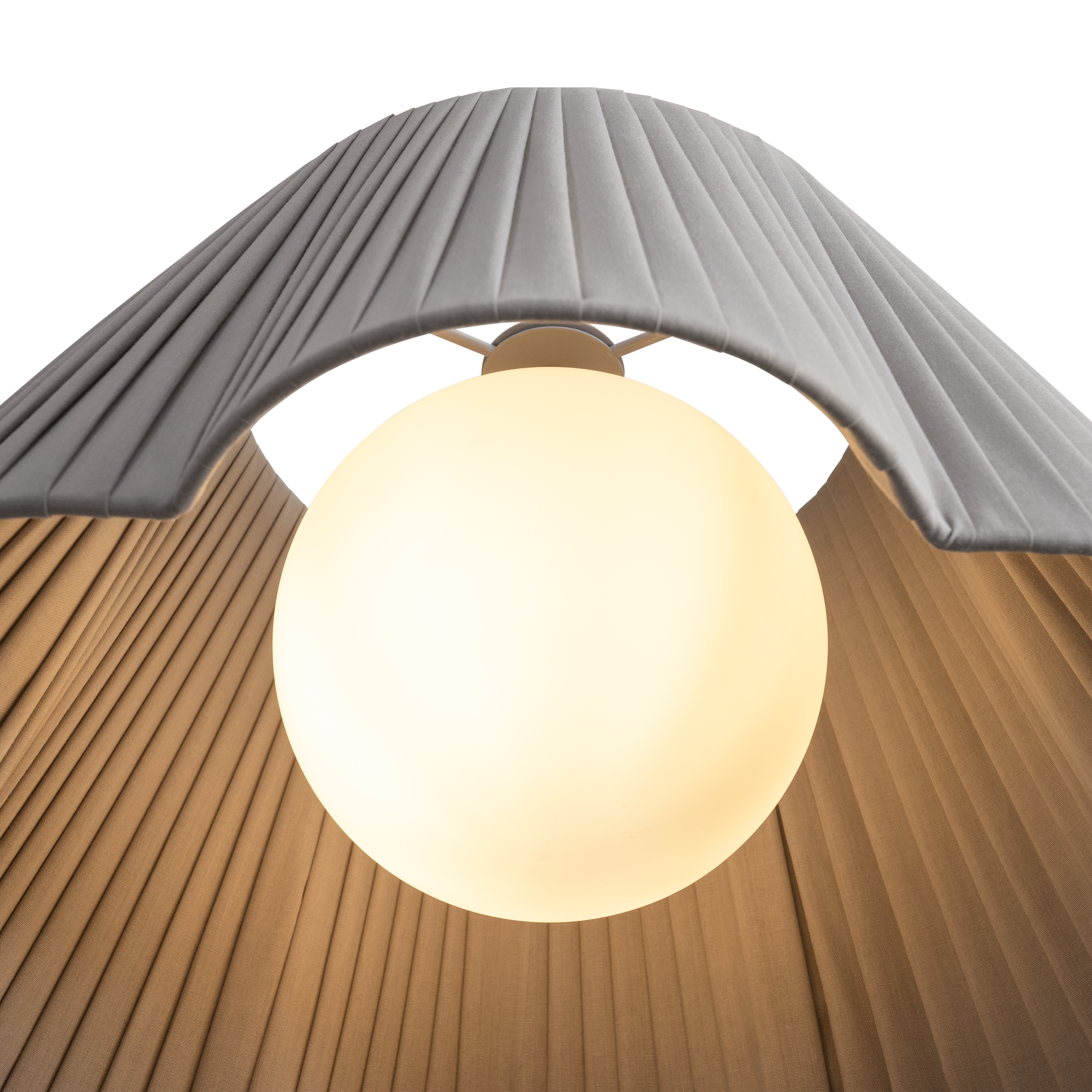 Металлическая арматура в цвете RAL 1019. Тканевые абажуры в светлых оттенках. Лампа E27 (не в комплекте).Бра с двумя источниками освещения Led и цоколь E27. Разнообразие типов светильников в серии.